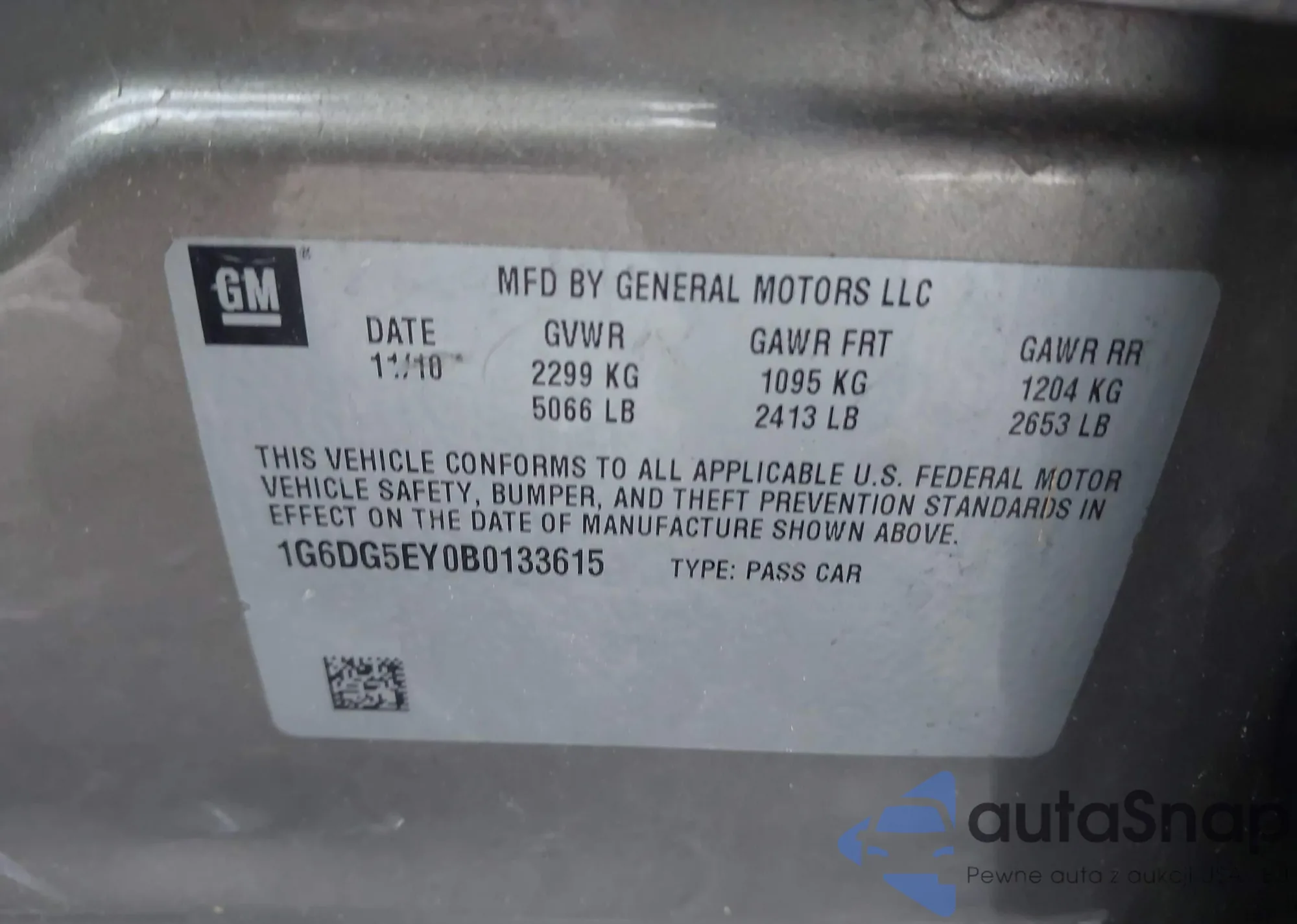 LOT: 44198989 VIN: 5NPEC4AC4BH054470