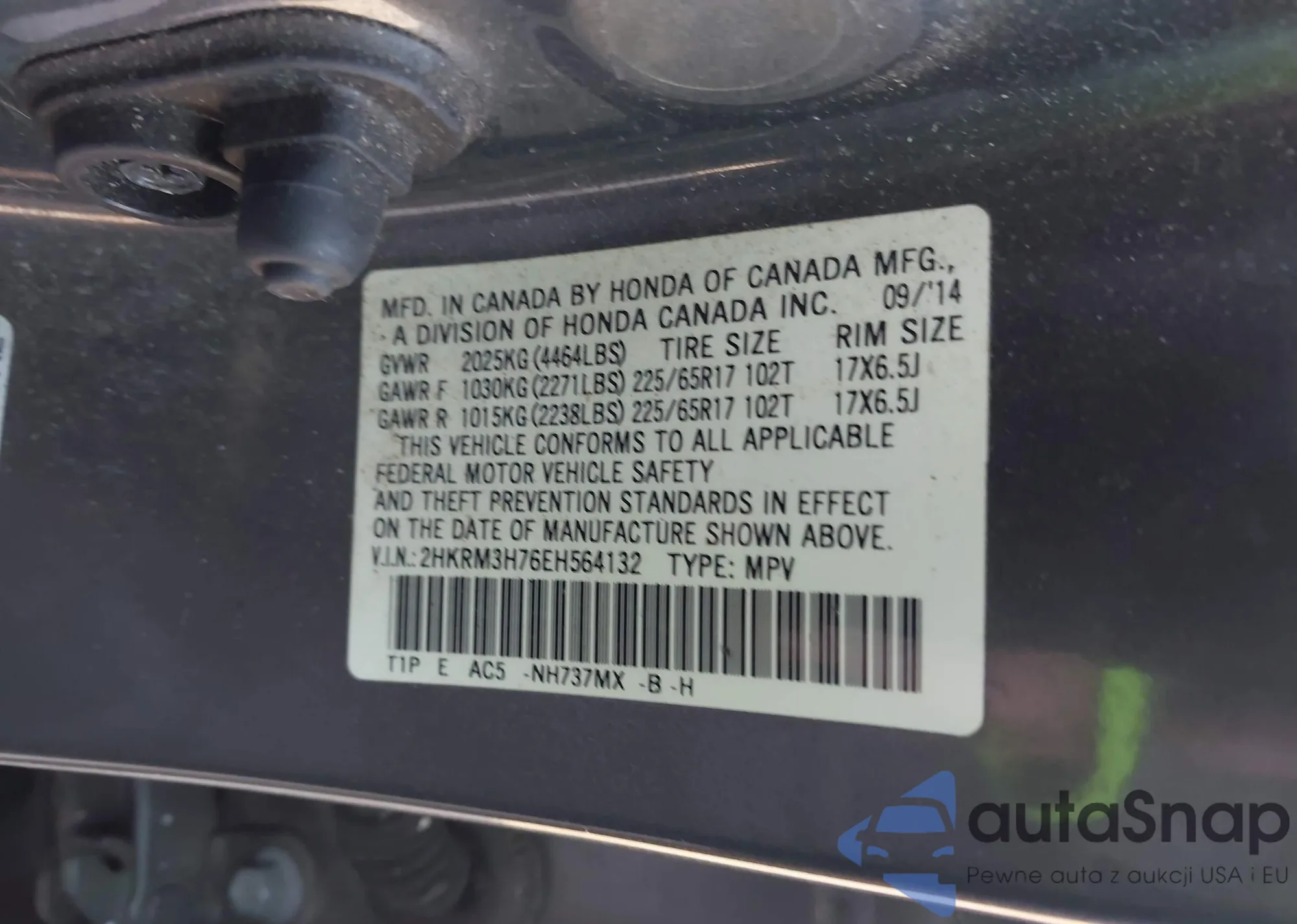 • VIN 2HKRM3H76EH564132