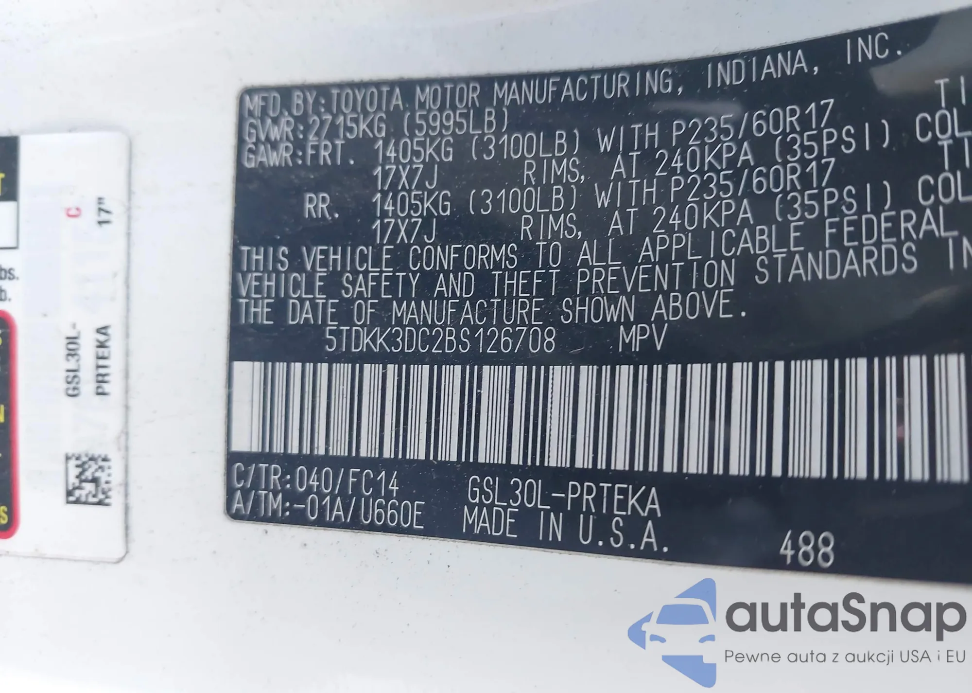 • VIN 4T4BE46KX9R058246