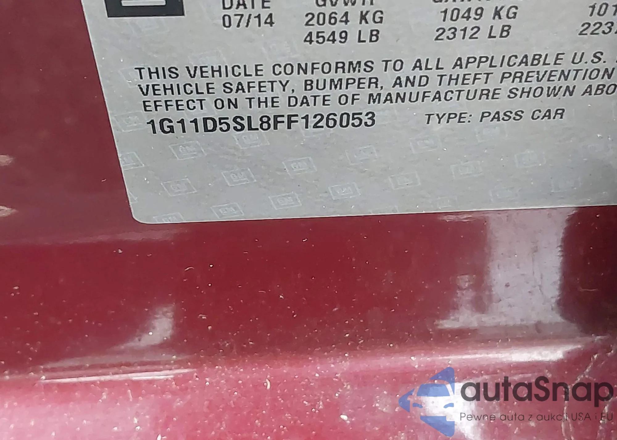 • VIN 1G11D5SL8FF126053