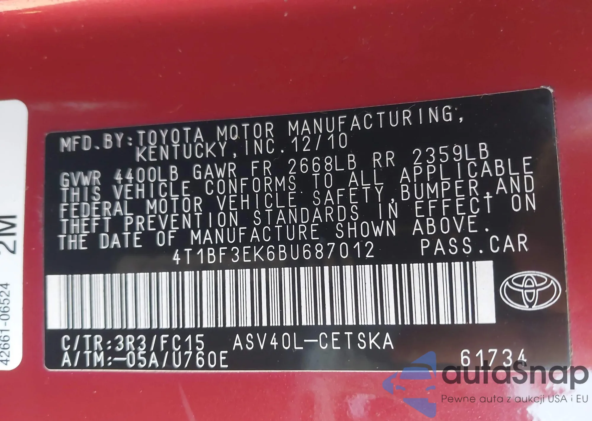 • VIN 4T3BK3BB8EU108887