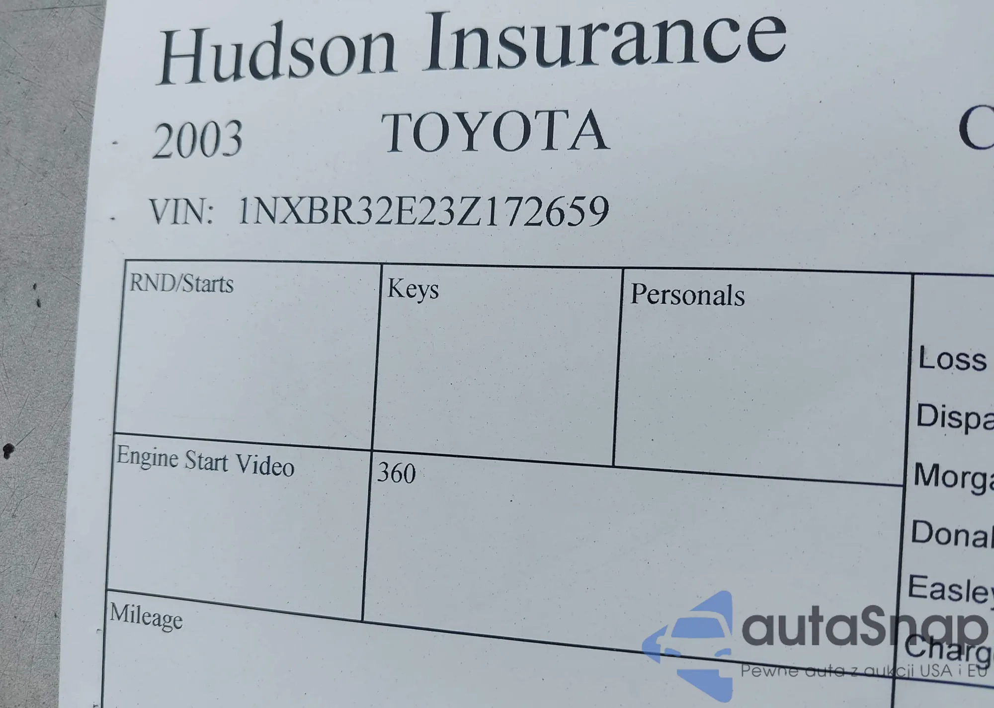 LOT: 38727033 VIN: 1NXBR32E23Z172659