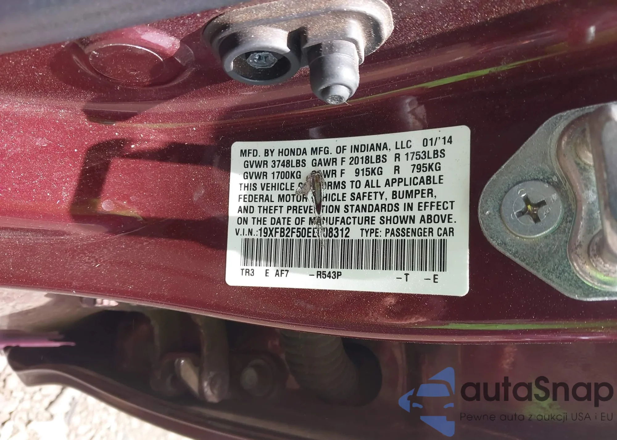 • VIN 5FNYF4H54DB008991