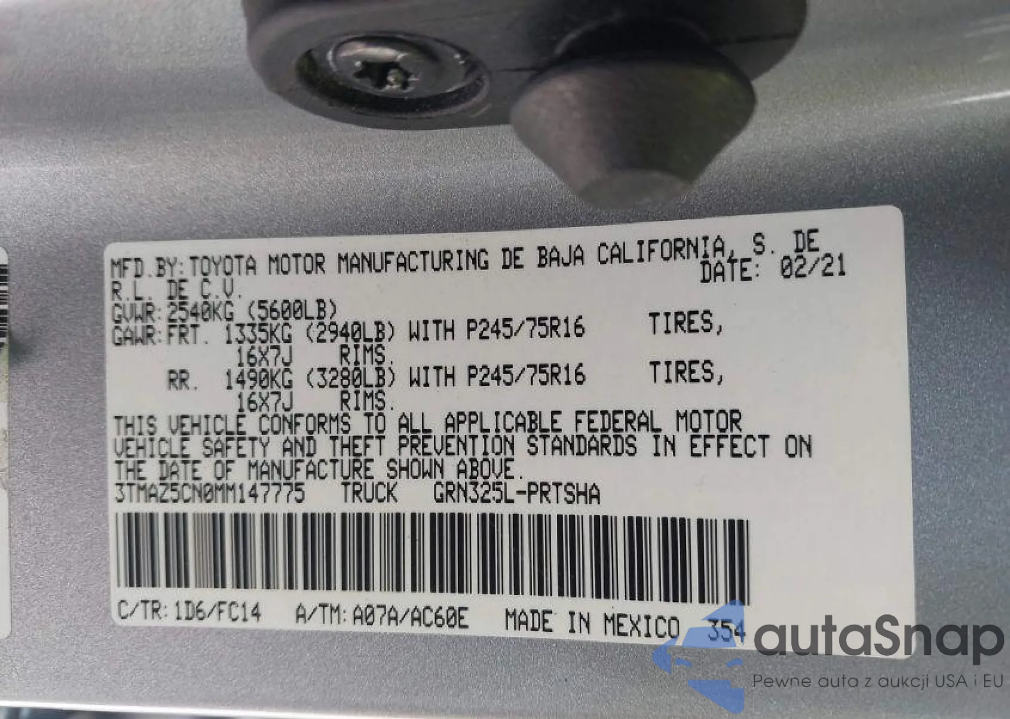 • VIN 3TMAZ5CN0MM147775