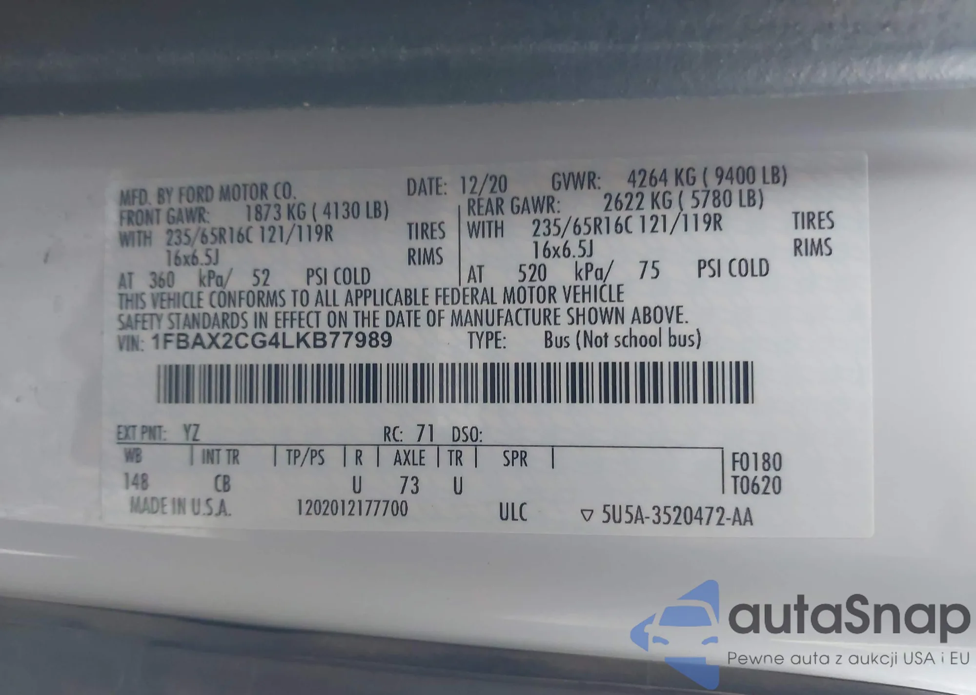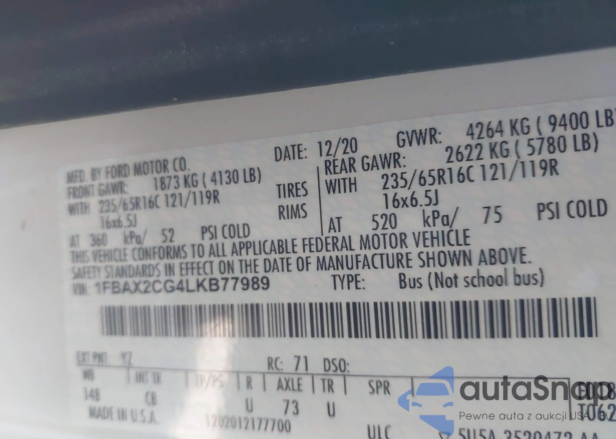 • VIN 1FBAX2CG4LKB77989
