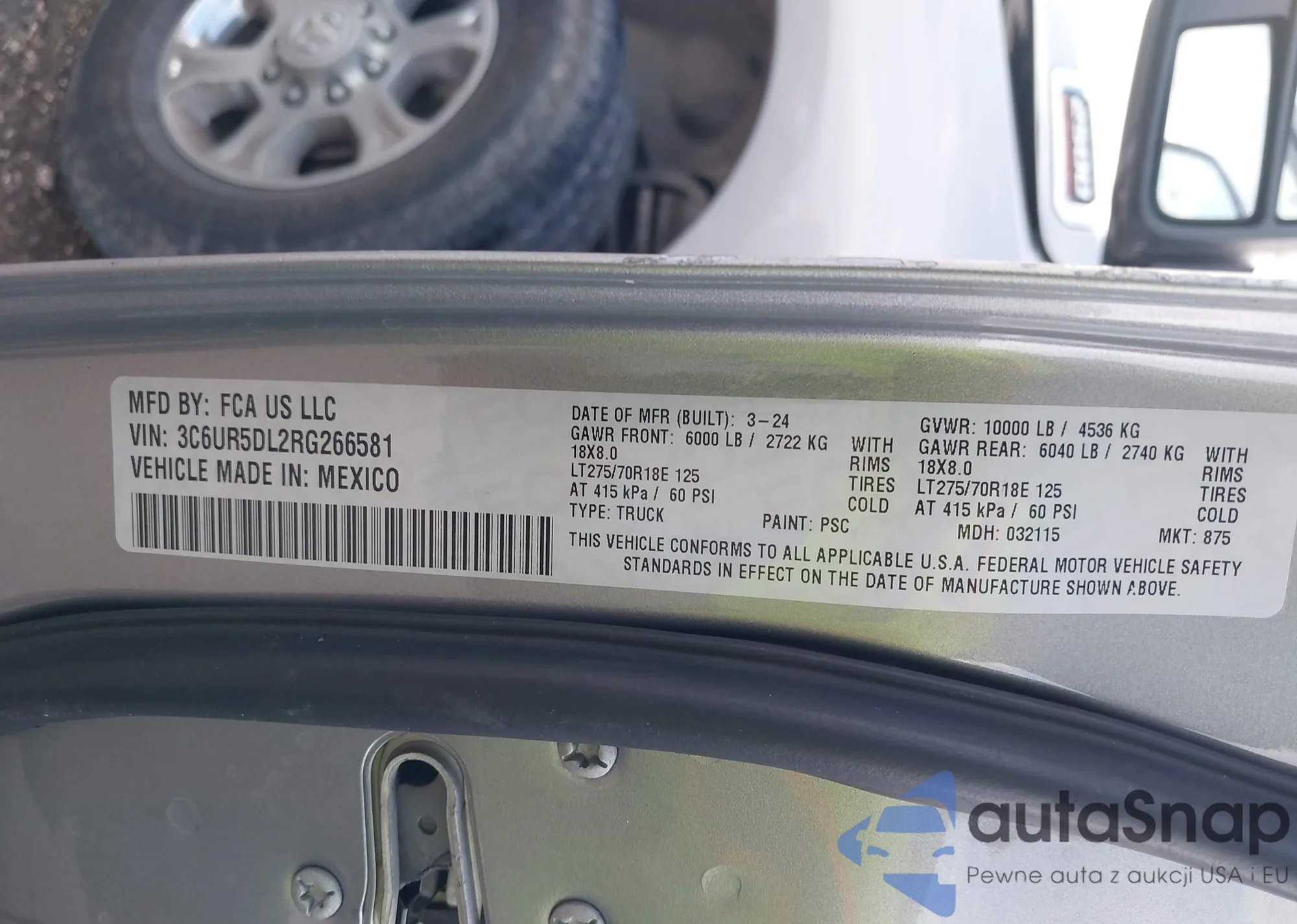 • VIN 3C6UR5DL2RG266581