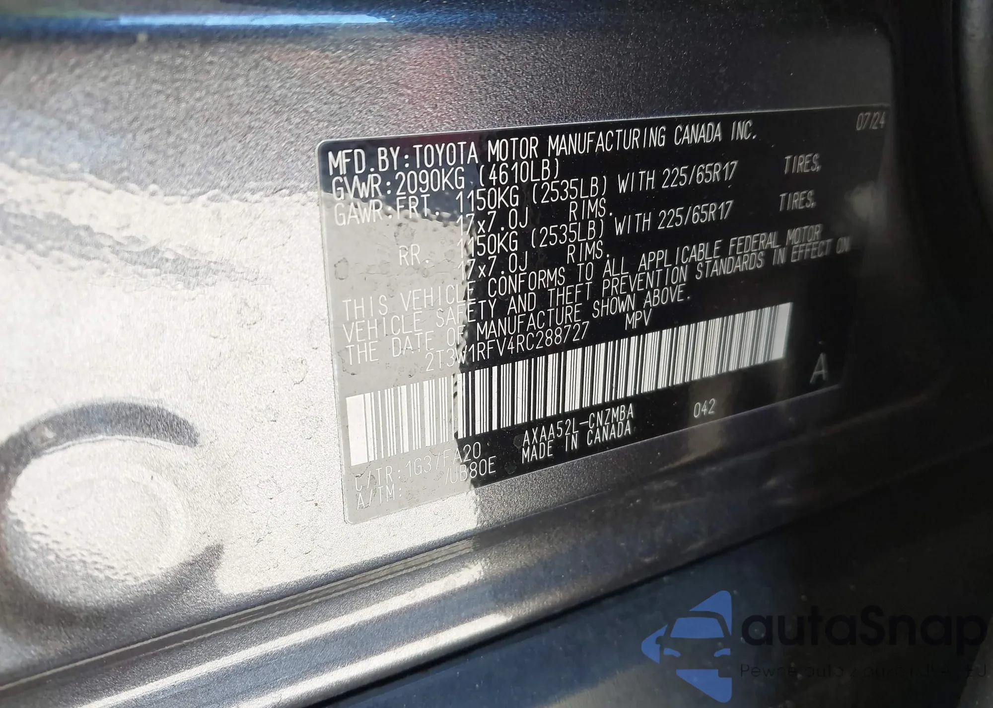 LOT: 41431209 VIN: 2T3W1RFV4RC288727
