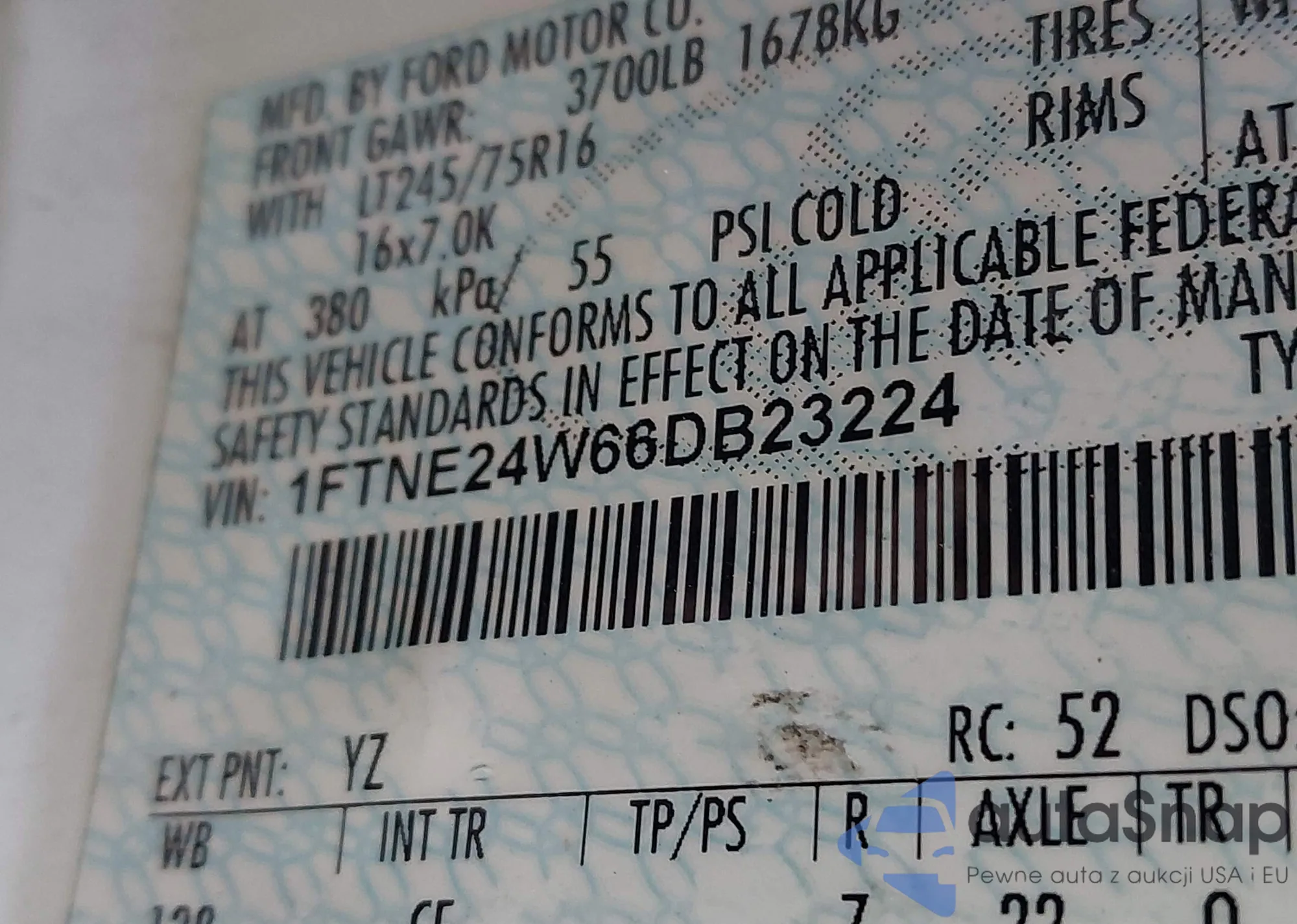 LOT: 44198853 VIN: 1FTNE24W66DB23224