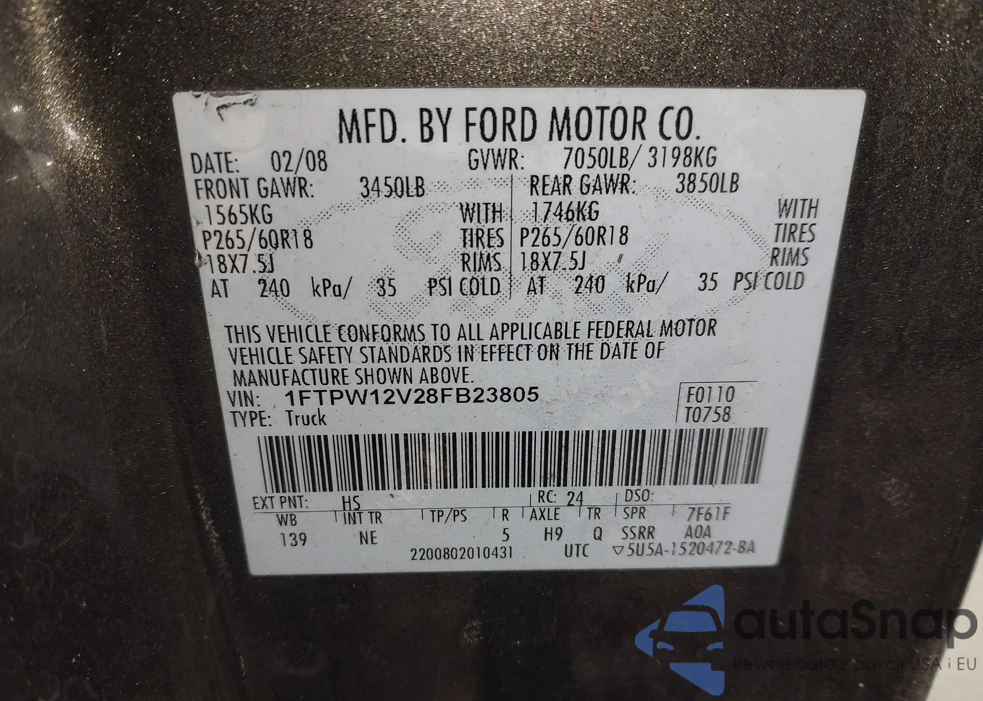 LOT: 44139048 VIN: 1FAFP34N46W151464