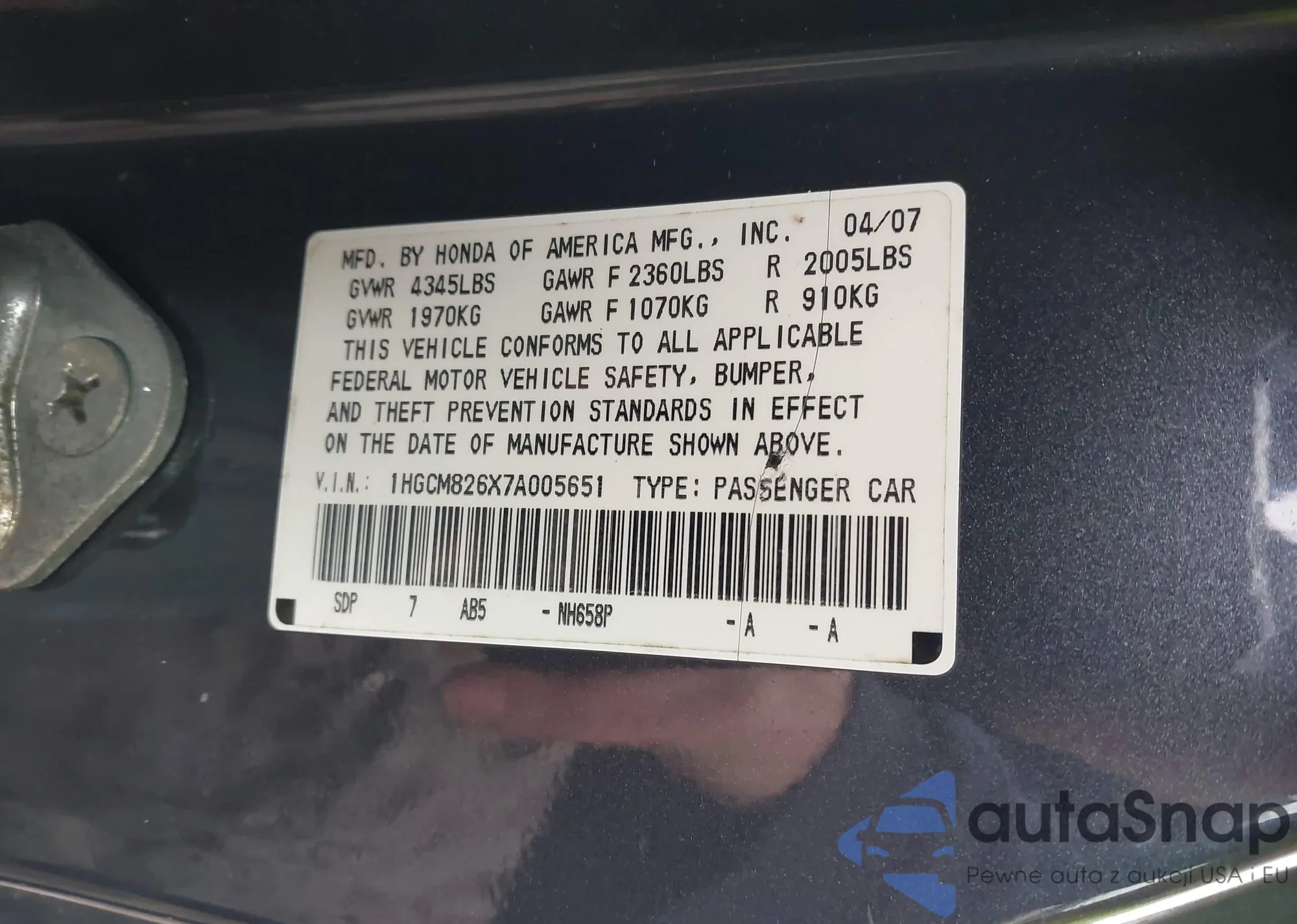 • VIN 1HGCM826X7A005651