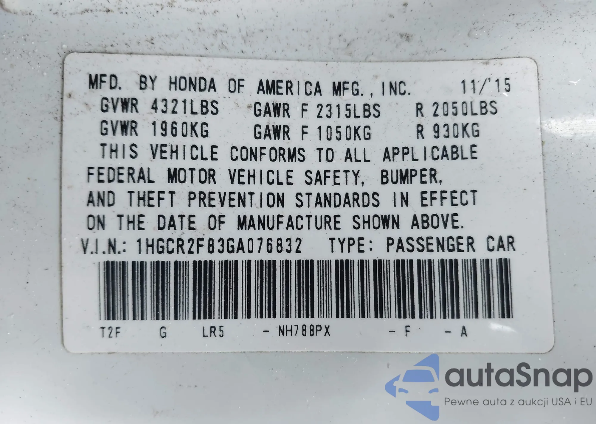 • VIN 2HGFC2F66LH512193