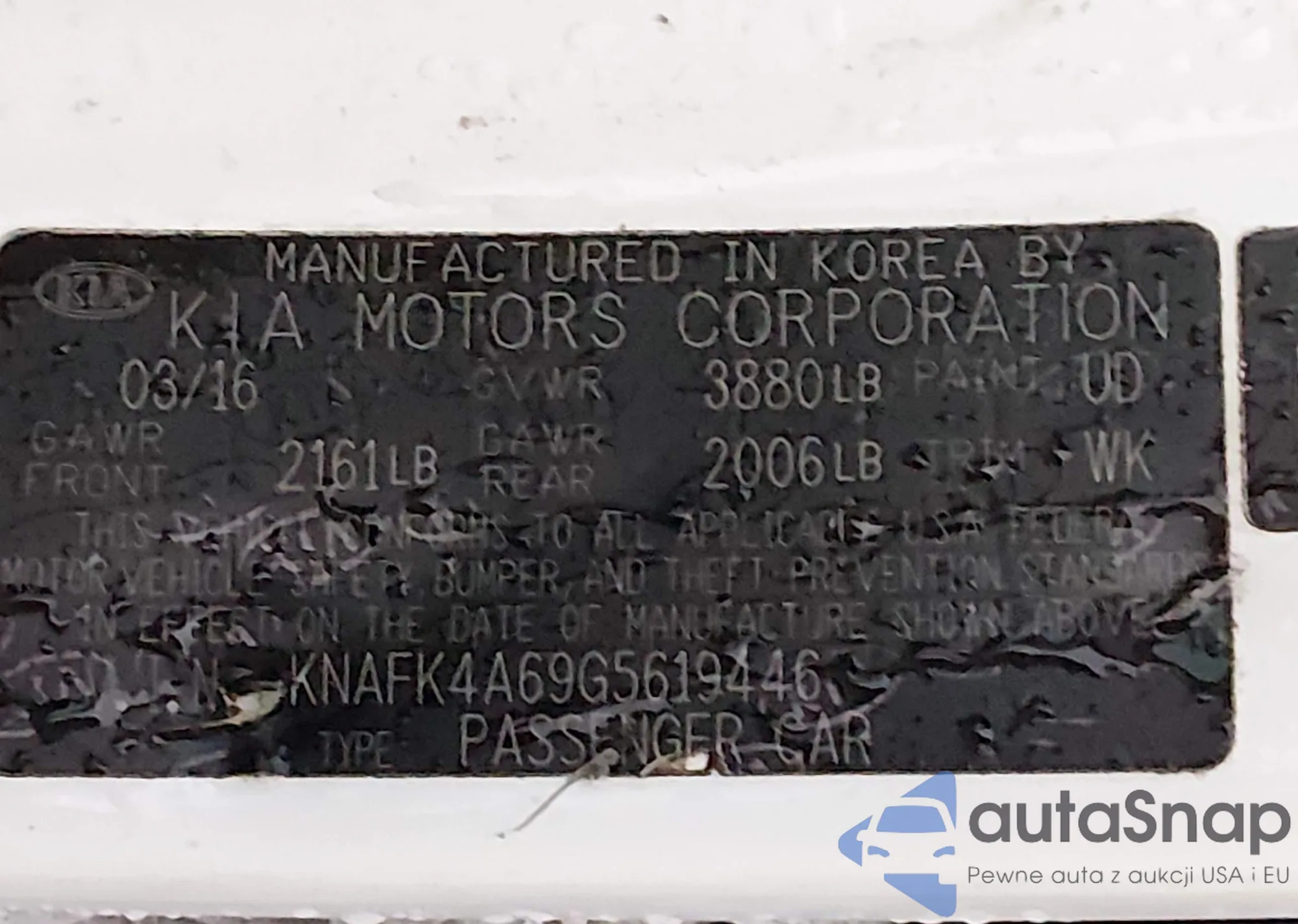 LOT: 43855339 VIN: KNAFK4A69G5619446