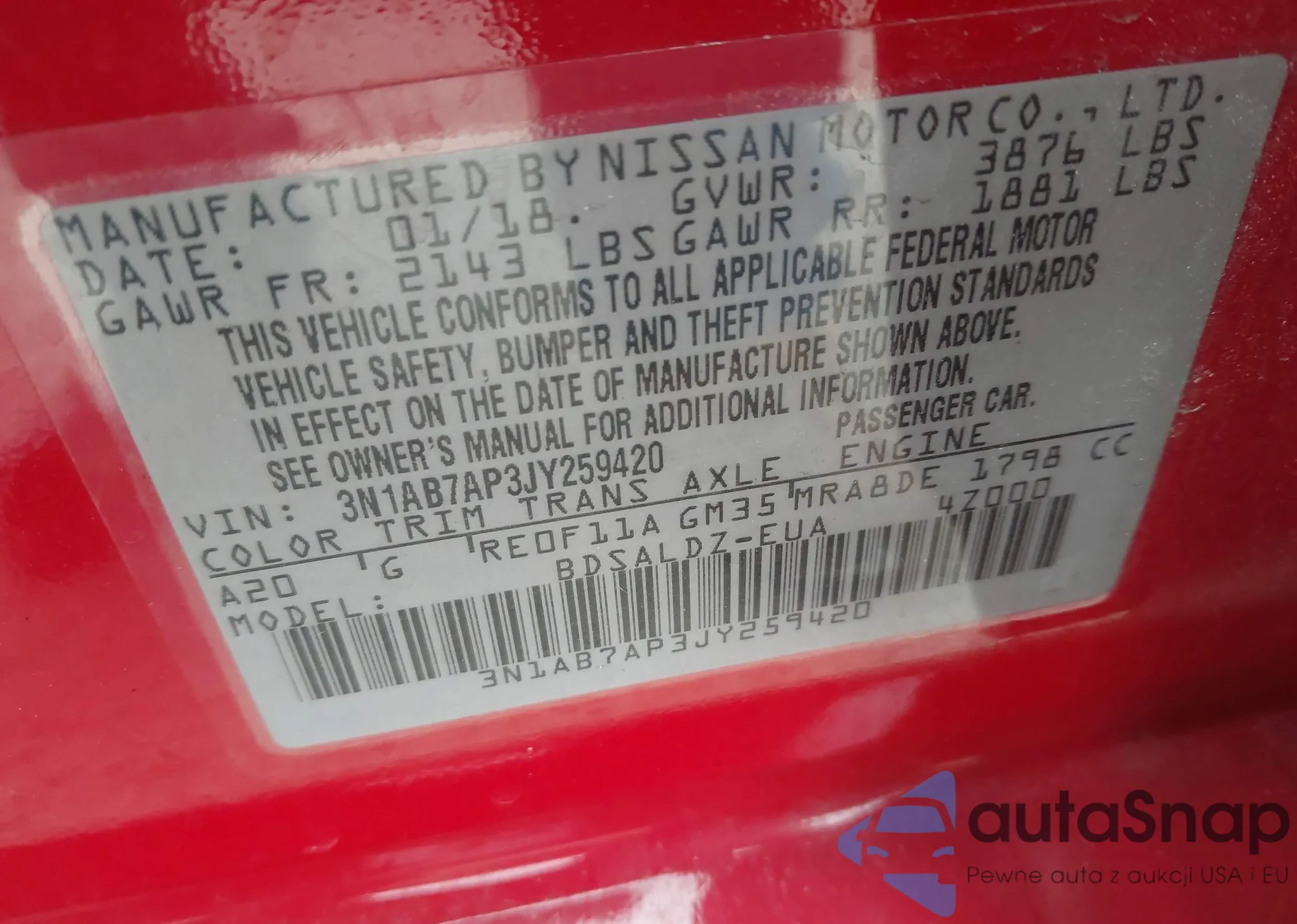 LOT: 44156785 VIN: 1N4AL3AP5JC220054