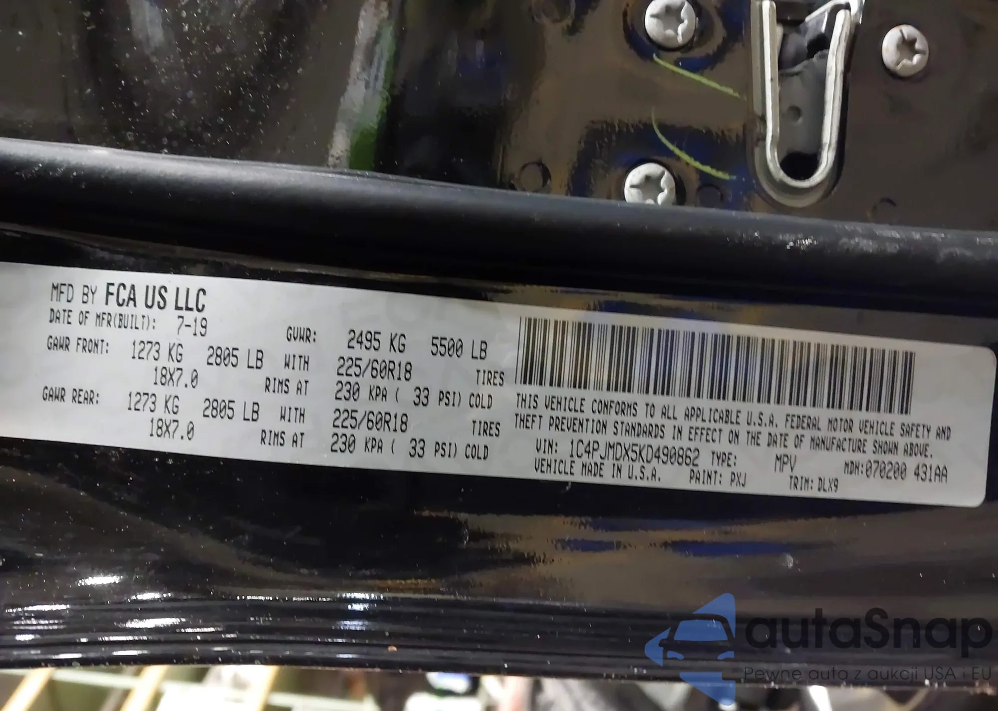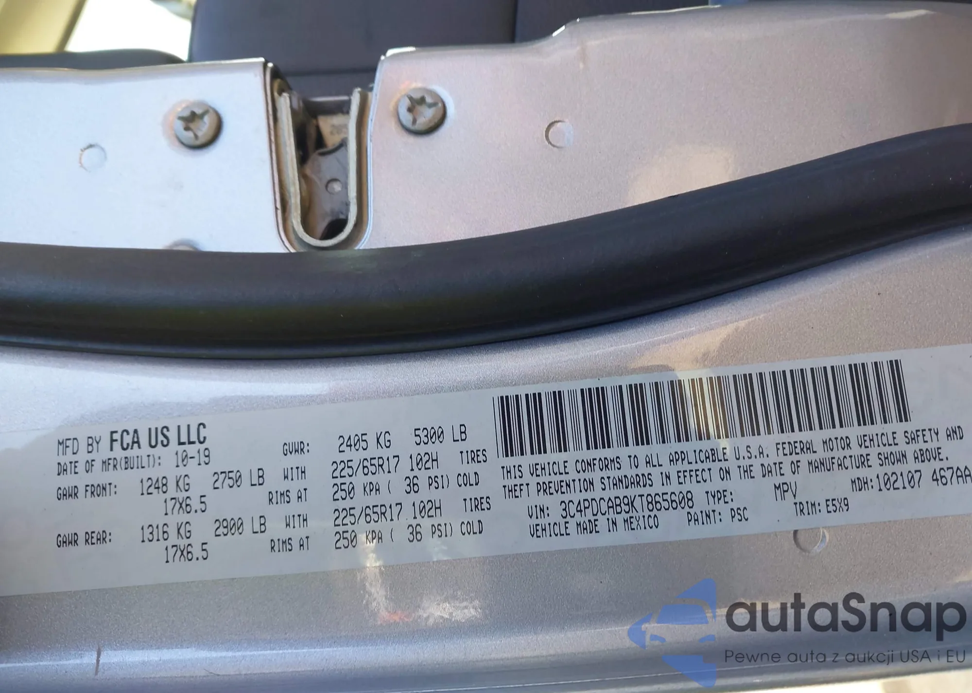 • VIN 3C4PDCAB9KT865608