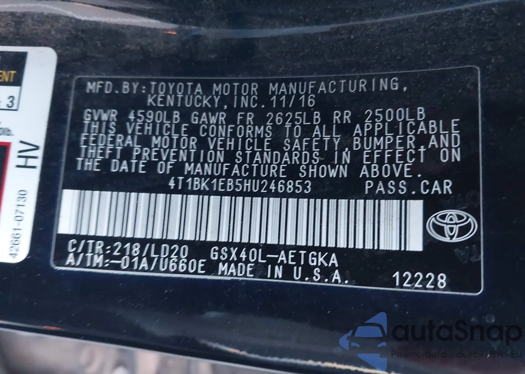 • VIN 4T1BK1EB5HU246853