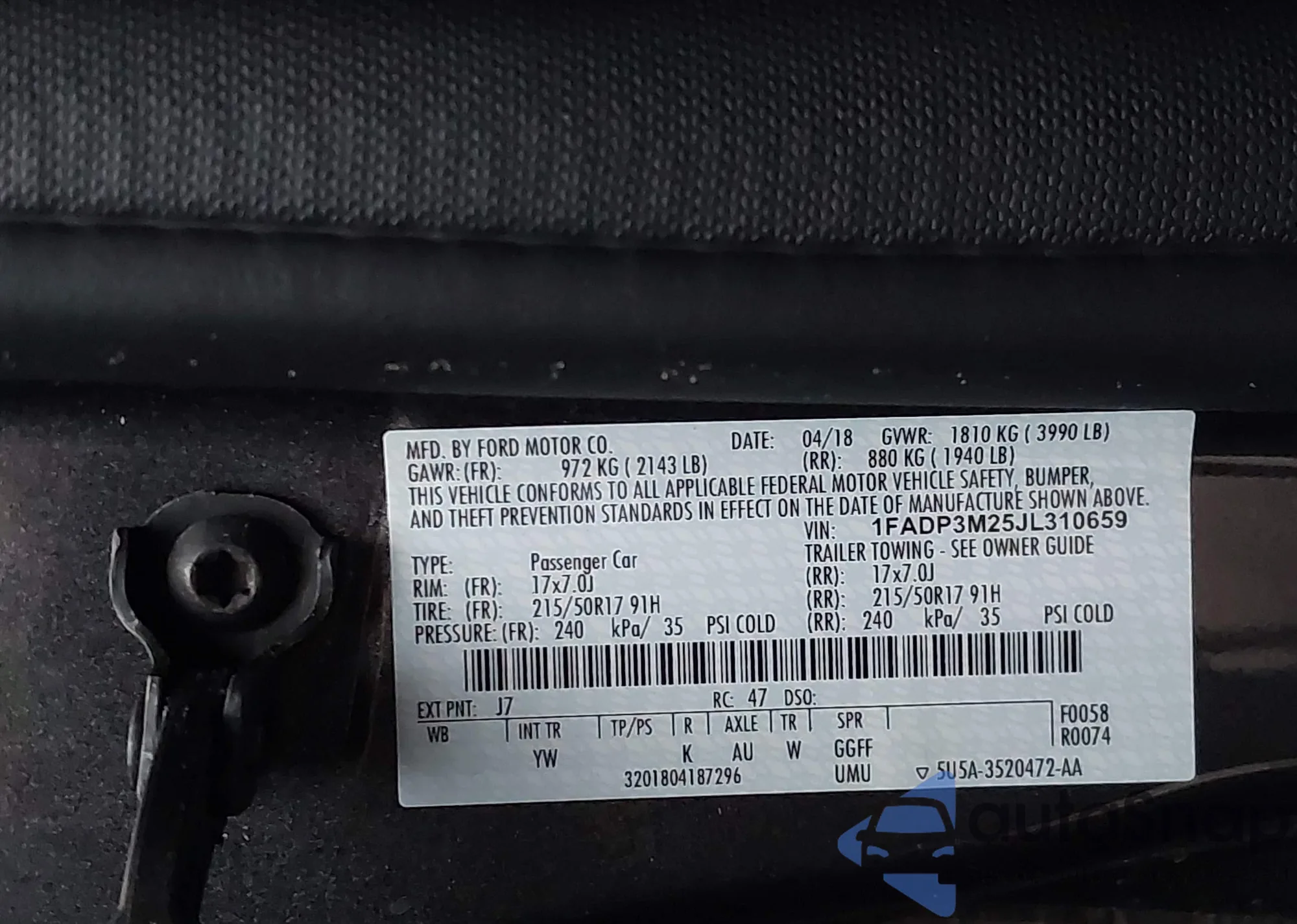 • VIN 1FADP3M25JL310659