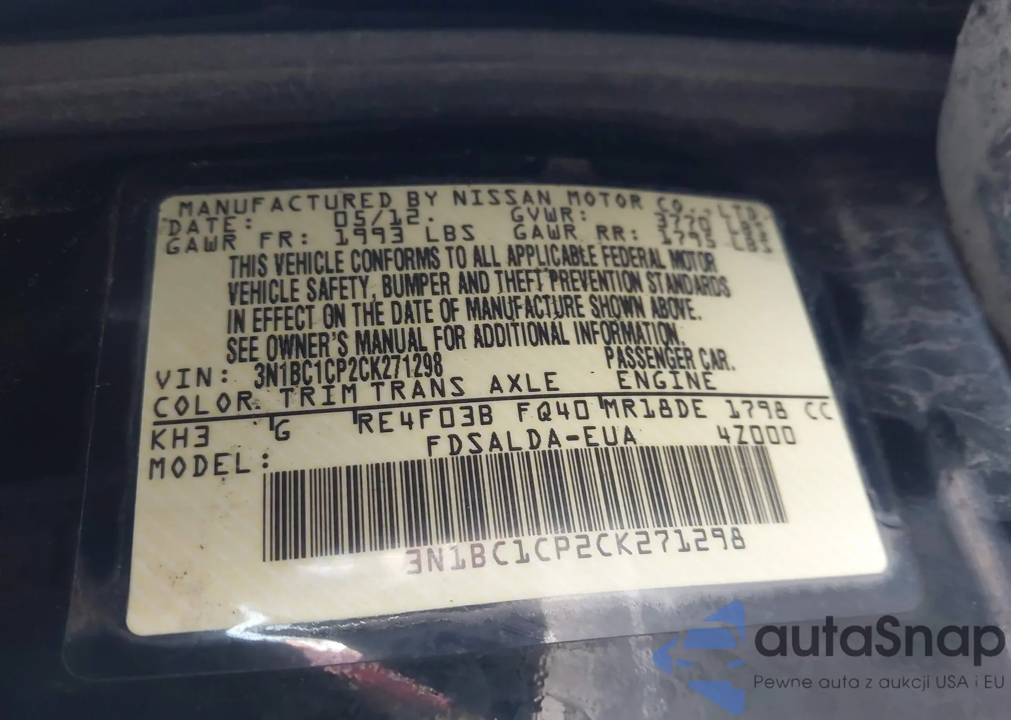 LOT: 44055838 VIN: 3N1BC1CP2CK271298