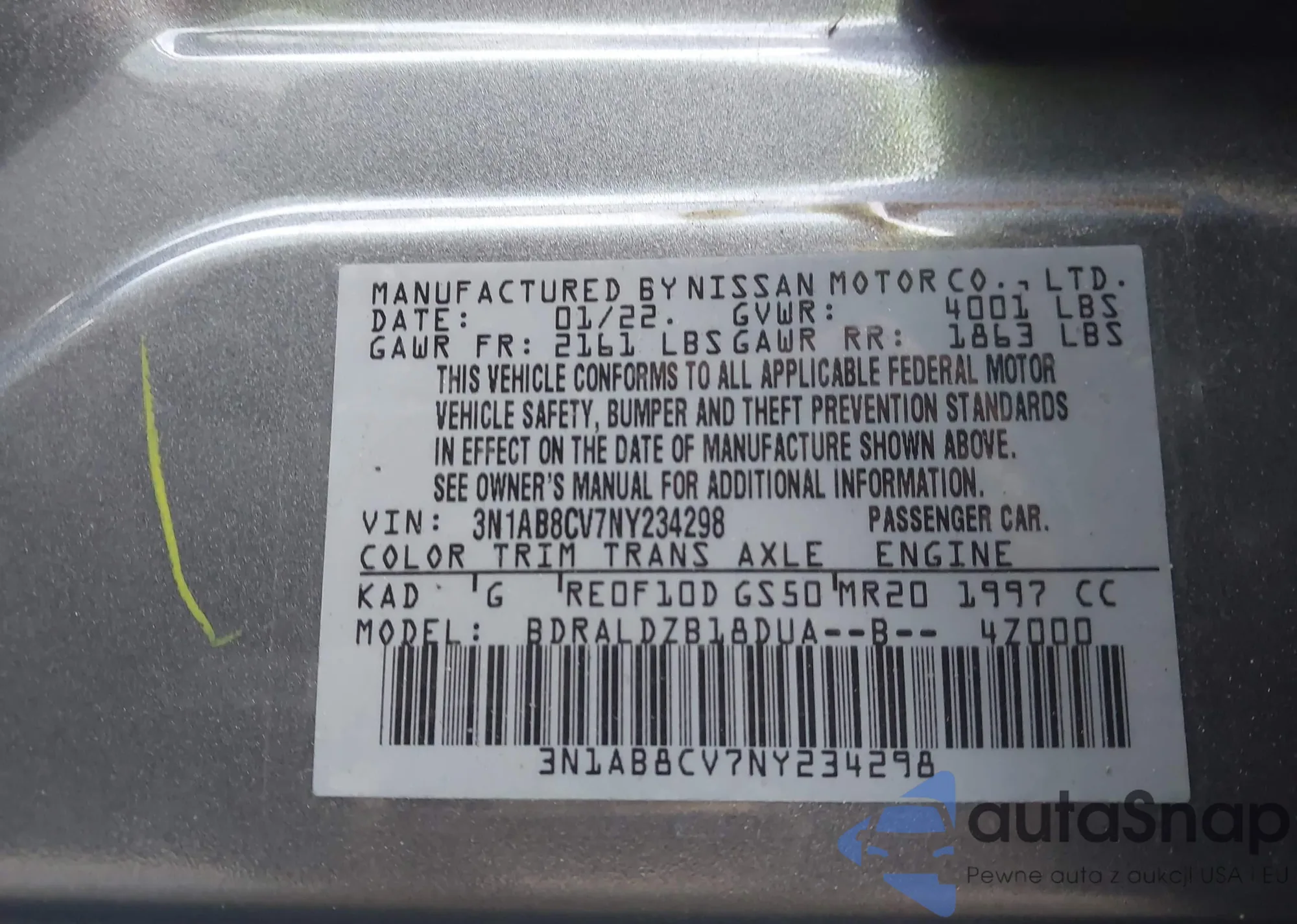 • VIN 3N1AB8CV7NY234298