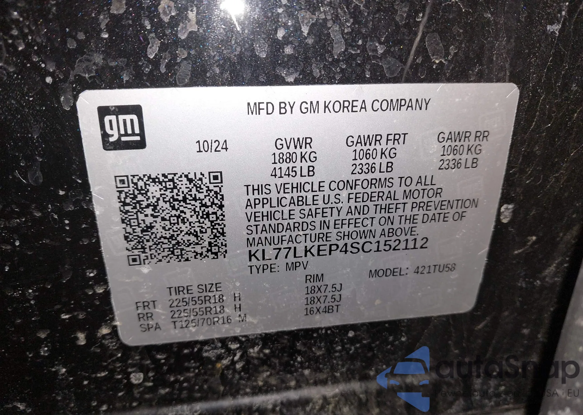 • VIN KL77LKEP4SC152112