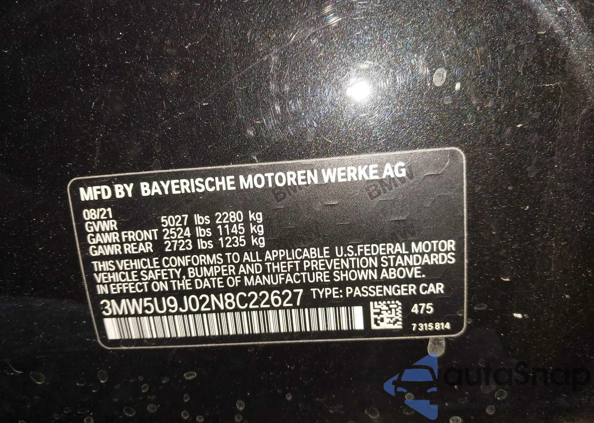 • VIN 3MW5U9J02N8C22627