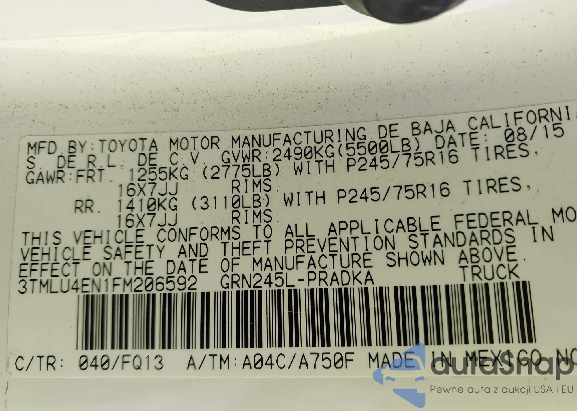 • VIN 3TMLU4EN1FM206592