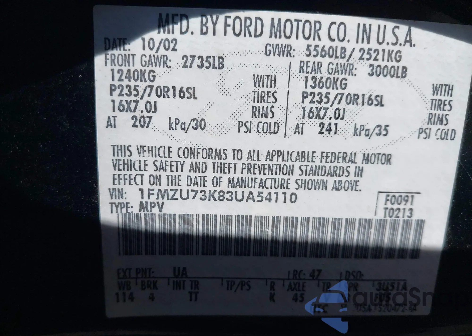 • VIN 4S3BNAB67K3008180