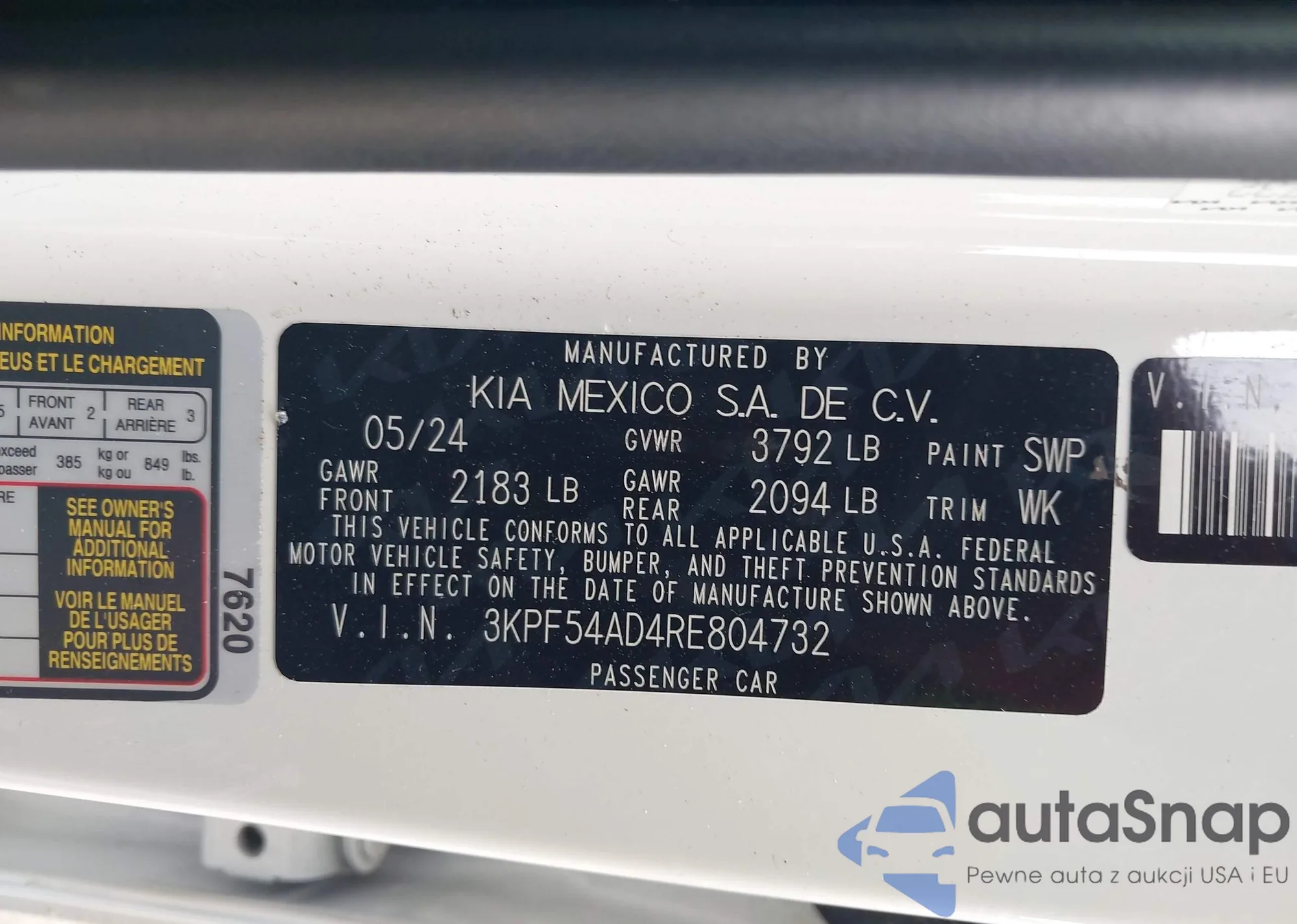 • VIN 3KPF54AD4RE804732