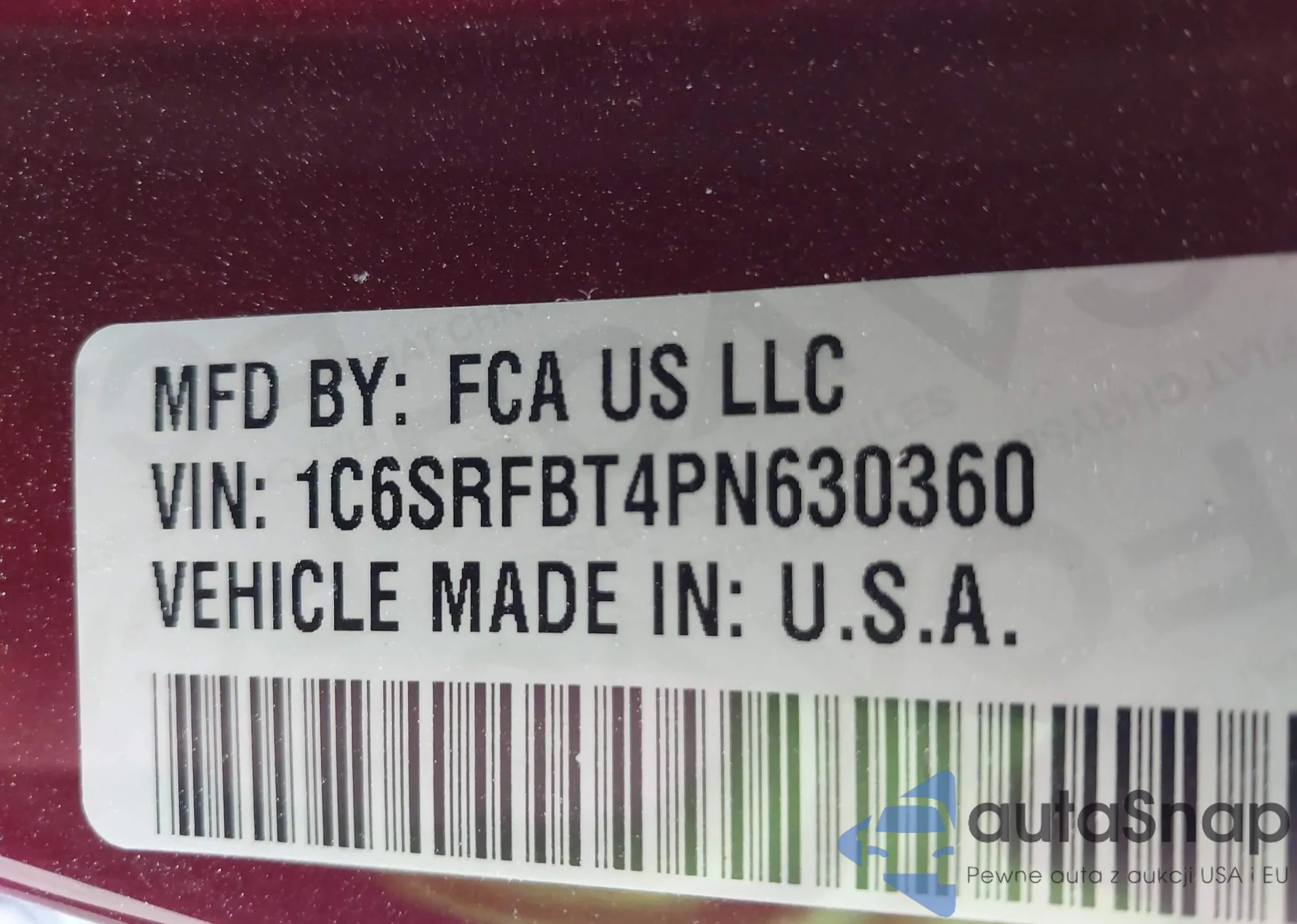 • VIN 1C6SRFBT4PN630360