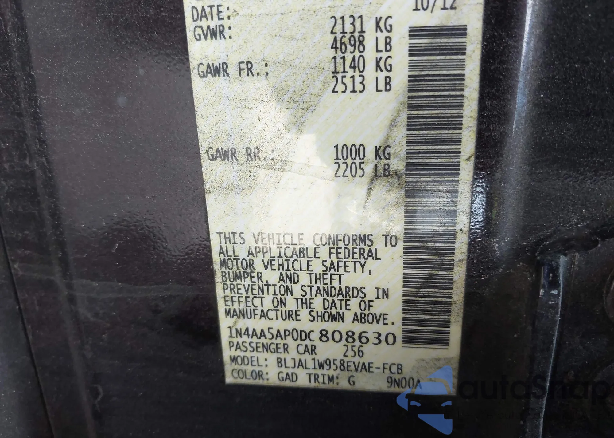 • VIN 1N4AA5AP0DC808630