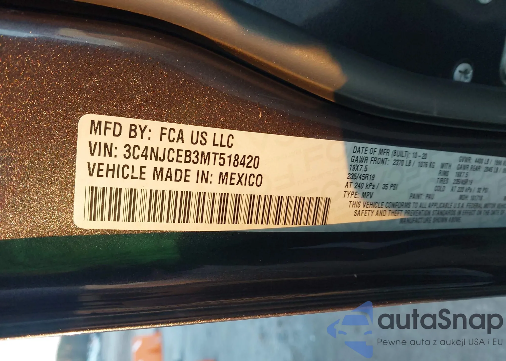 • VIN 3C4NJCEB3MT518420