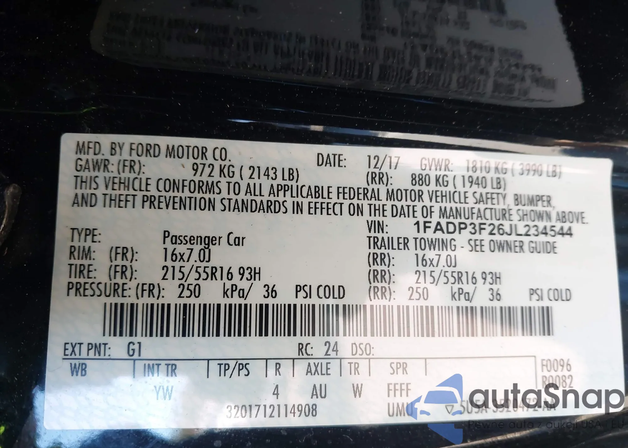 • VIN 1FADP3F26JL234544