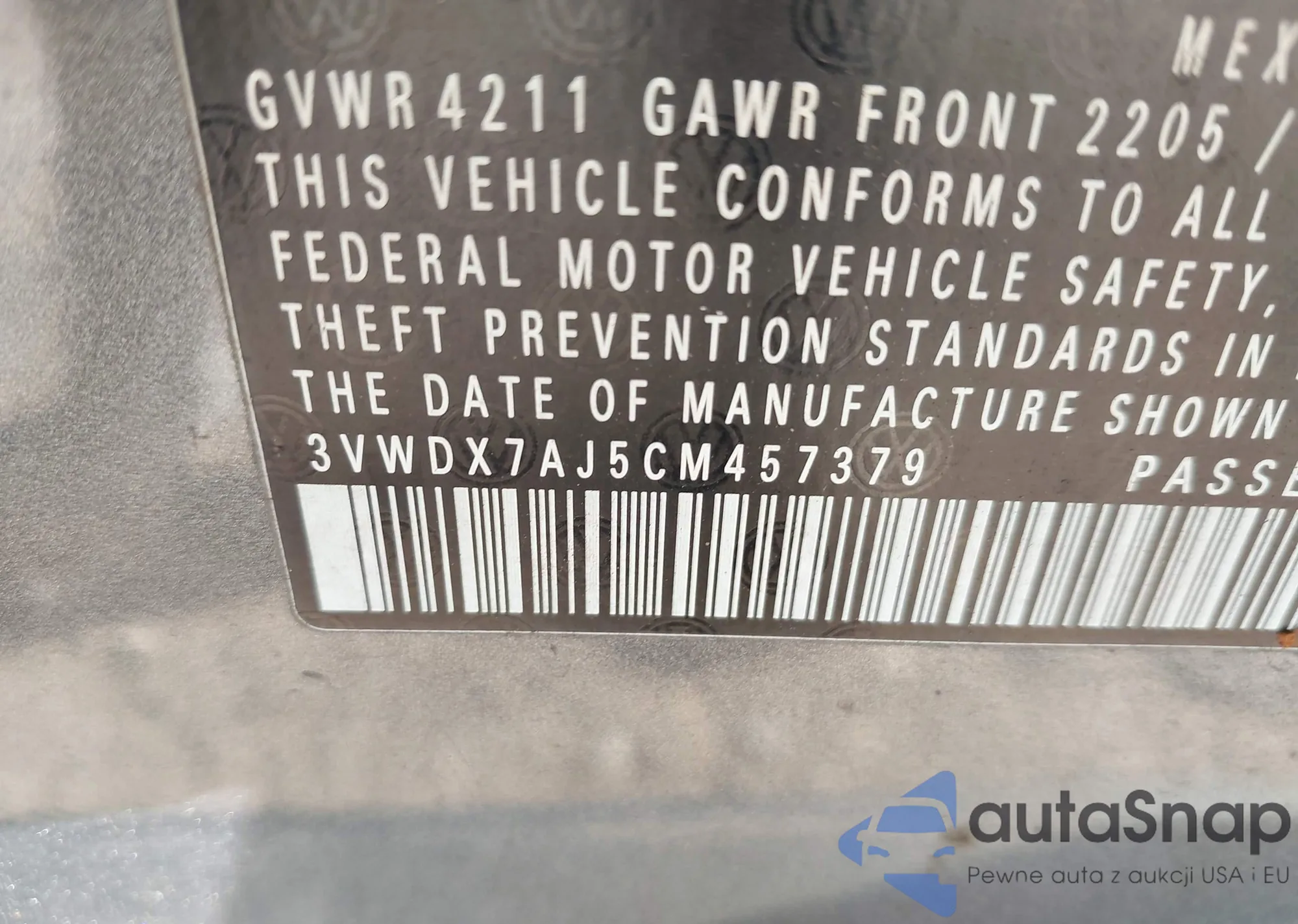 • VIN 3VWDX7AJ5CM457379