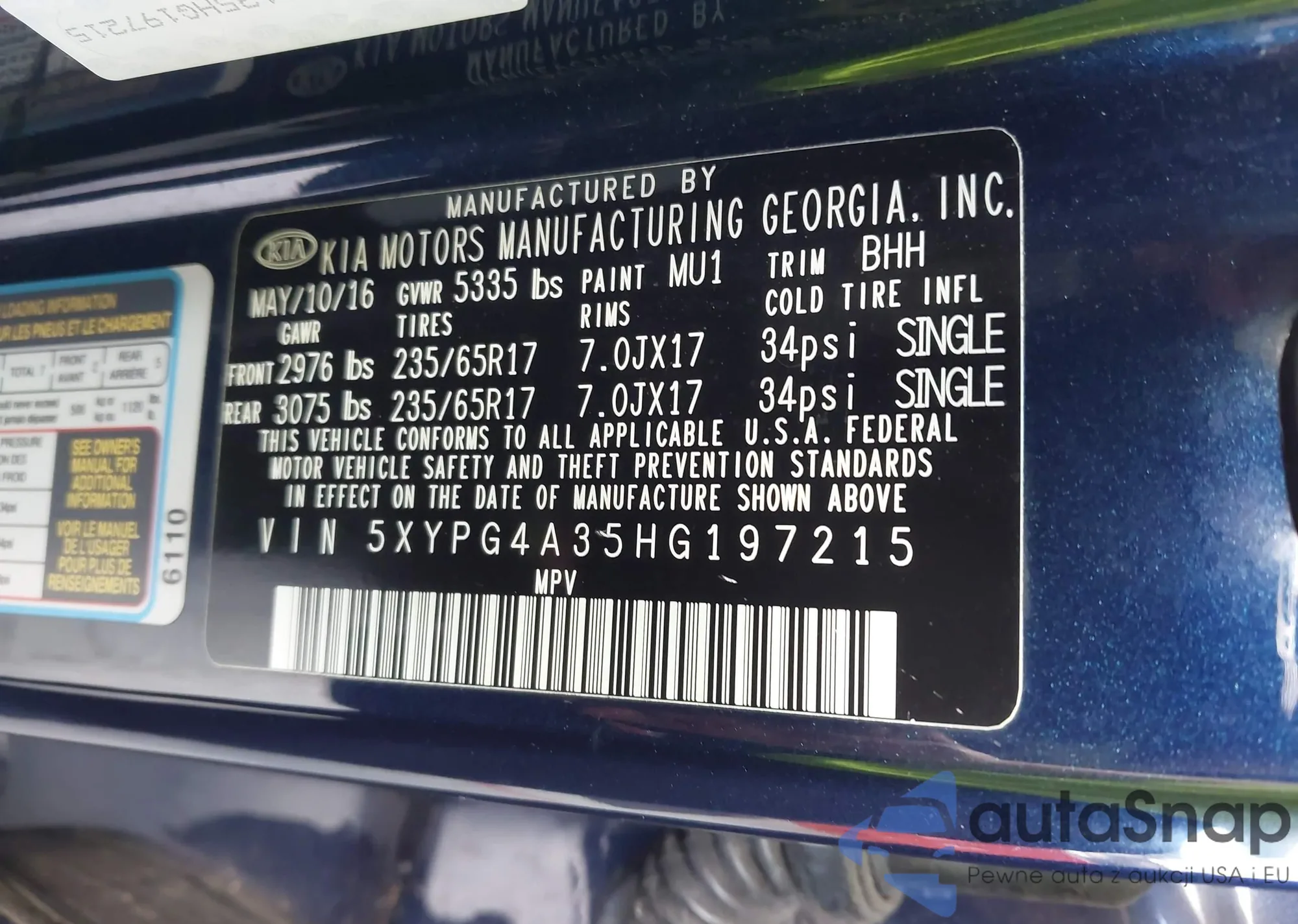 • VIN 5XYPG4A35HG197215