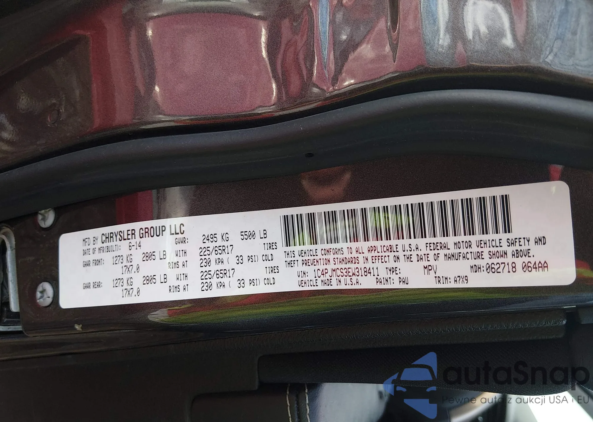 • VIN 1C4PJMCS3EW318411