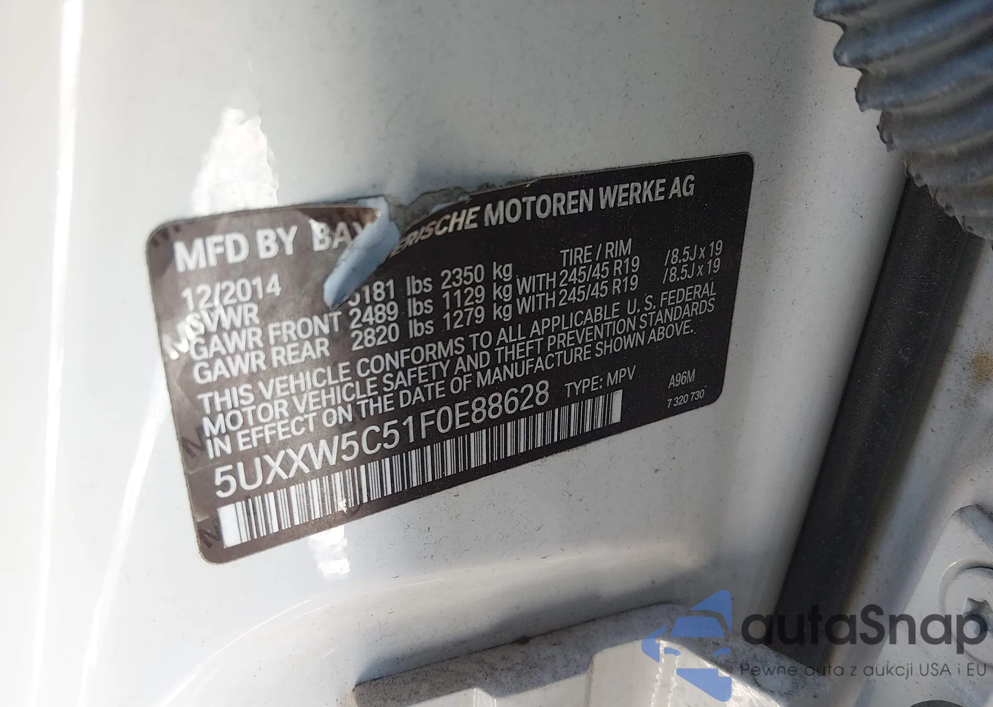 LOT: 44296092 VIN: 5UXXW5C51F0E88628