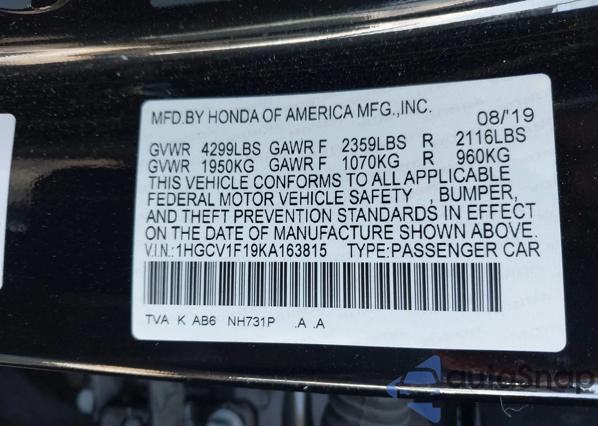 • VIN 1HGCR2F32FA215321