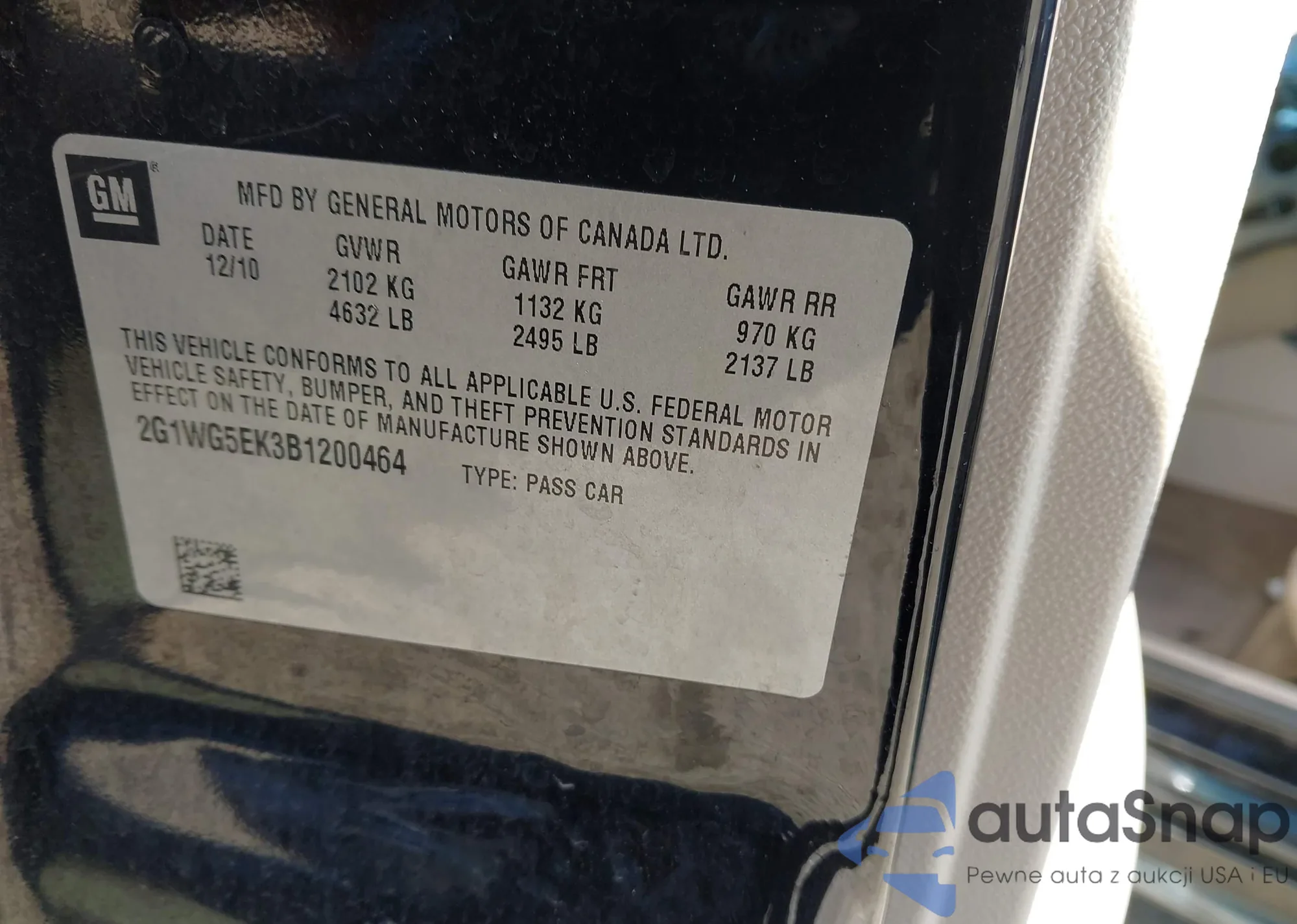 LOT: 44100118 VIN: 2G1WG5EK3B1200464