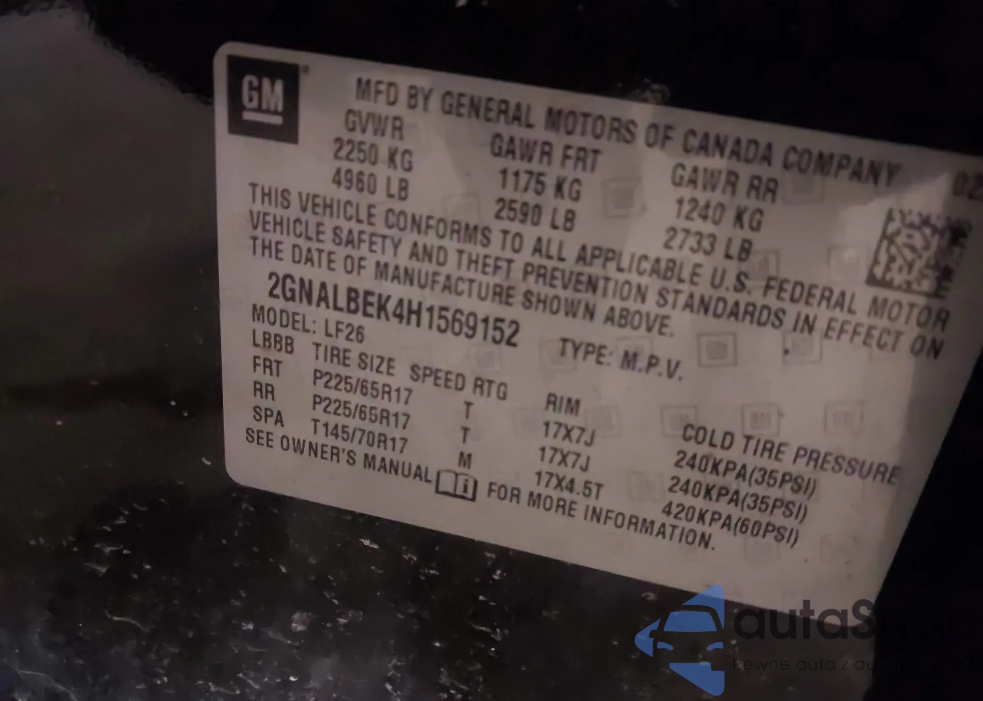 • VIN 2GNALBEK4H1569152
