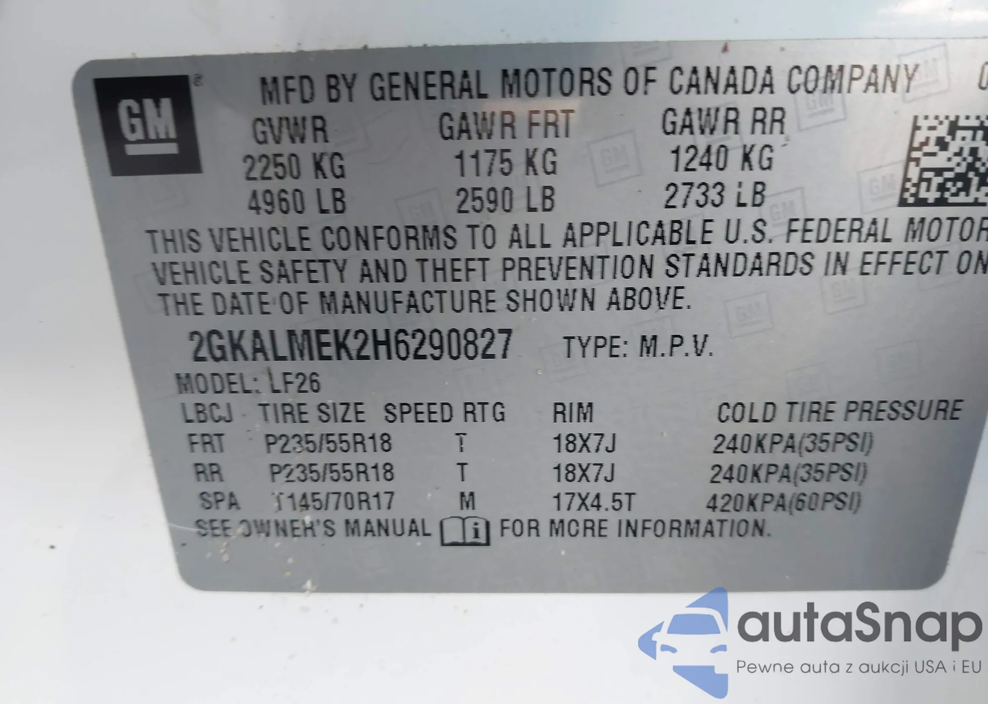 • VIN 2GKALMEK2H6290827