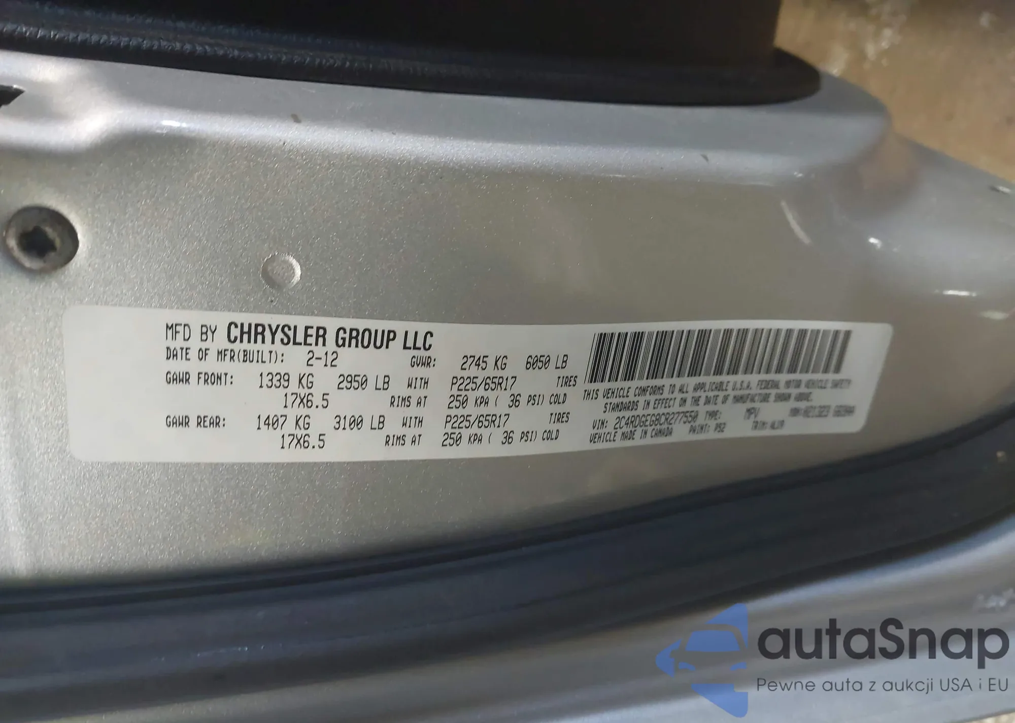 • VIN 2C4RDGEG8CR277550