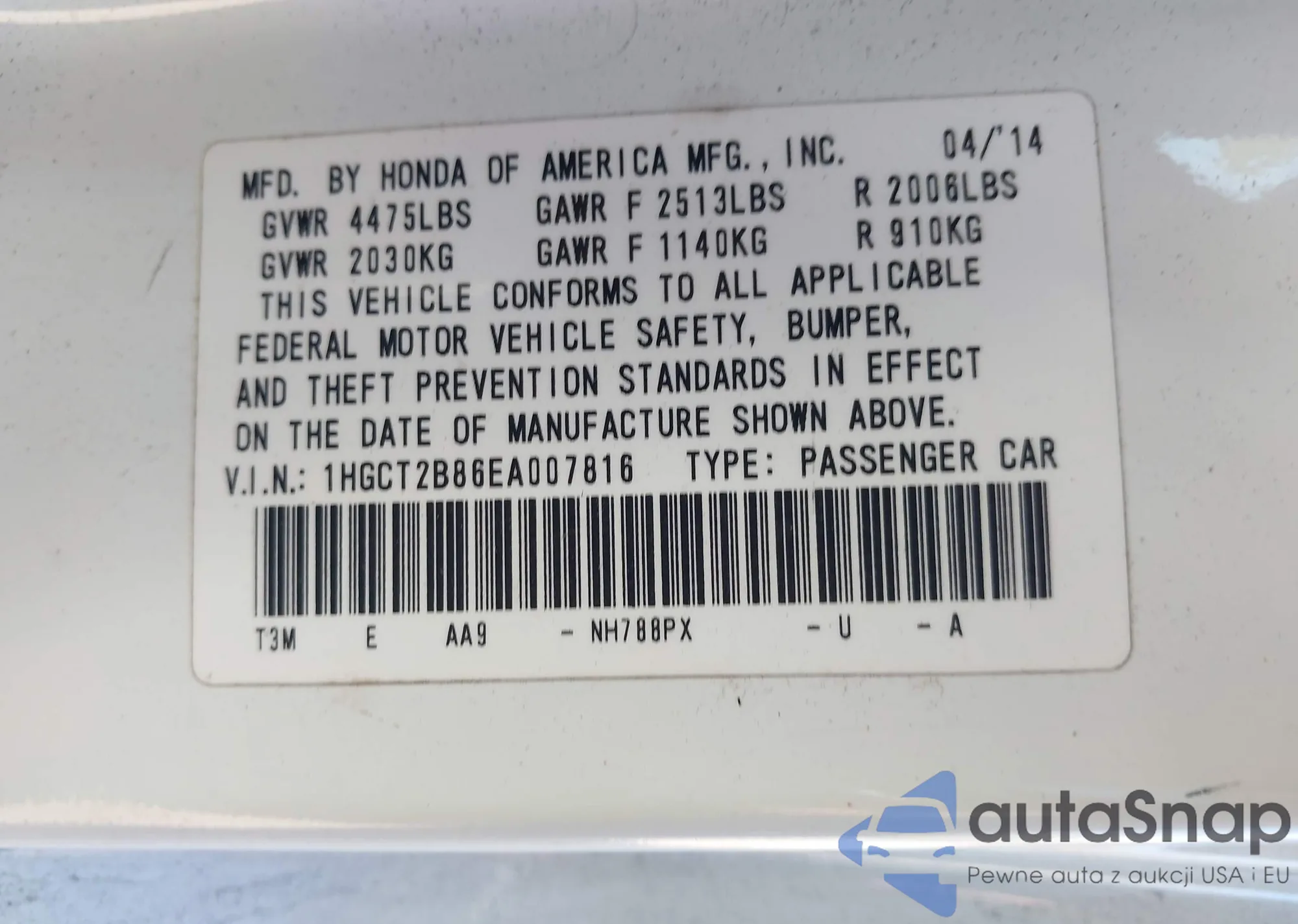 • VIN 1N4AA5APXBC867651