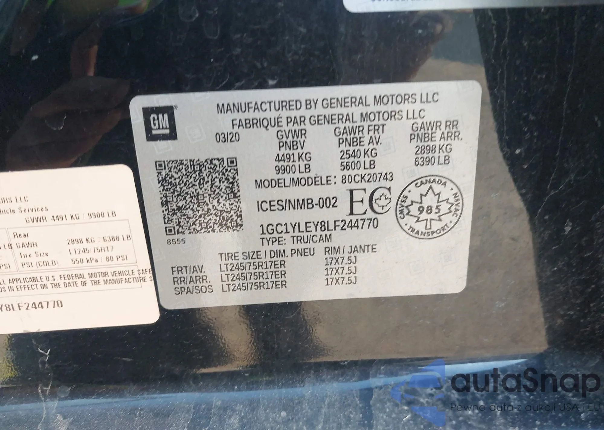 LOT: 43835484 VIN: 1GTCS136458129929