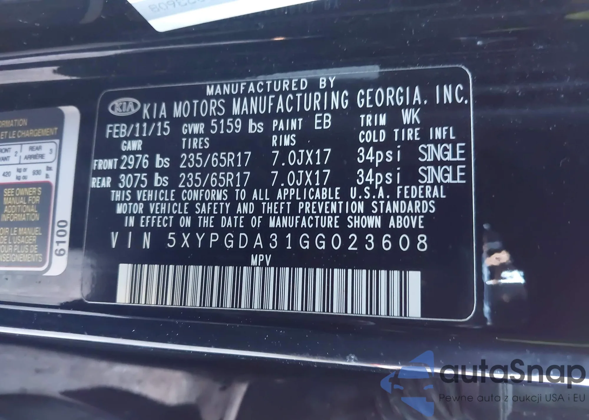 • VIN 5XYPGDA31GG023608