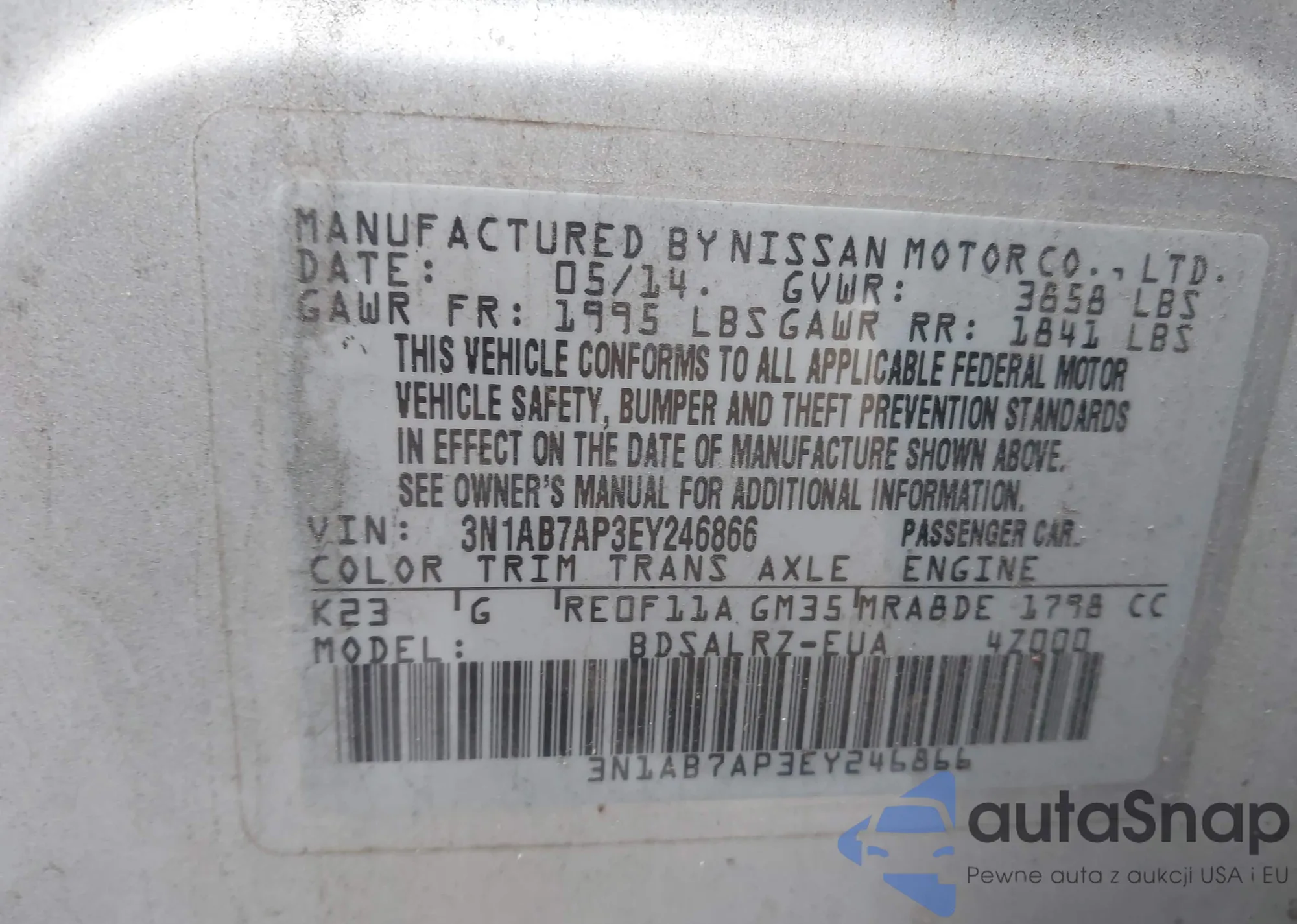• VIN 3N1AB7AP9EL626274