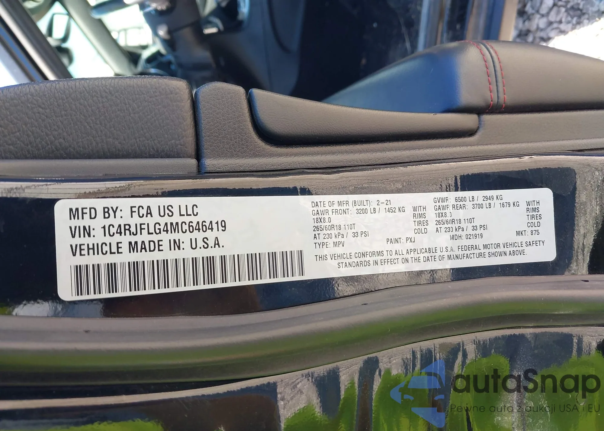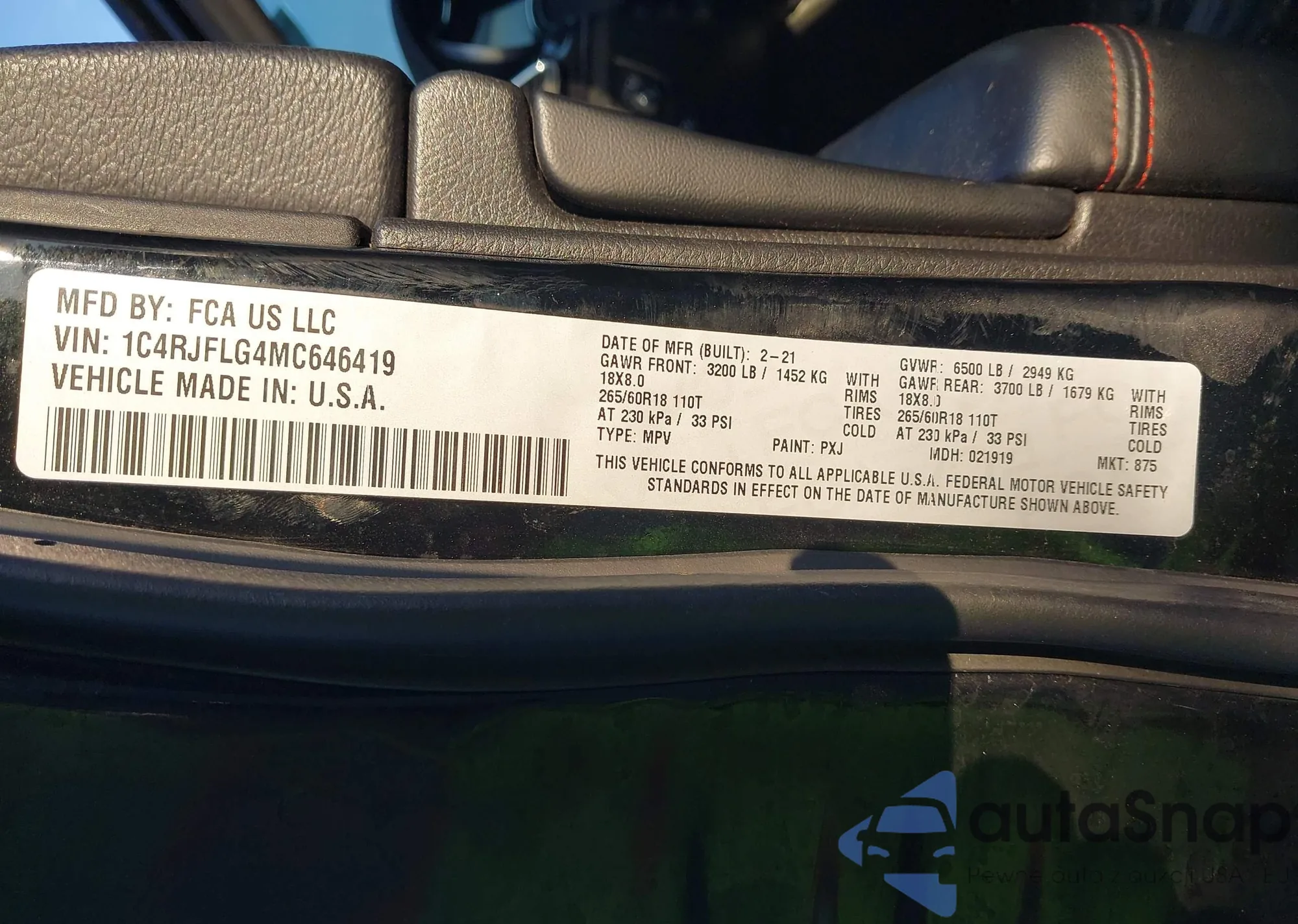 • VIN 1C4RJFLG4MC646419