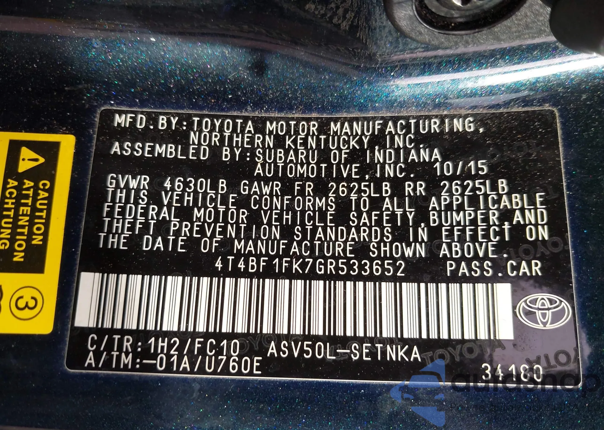 • VIN 4T4BF1FK7GR533652