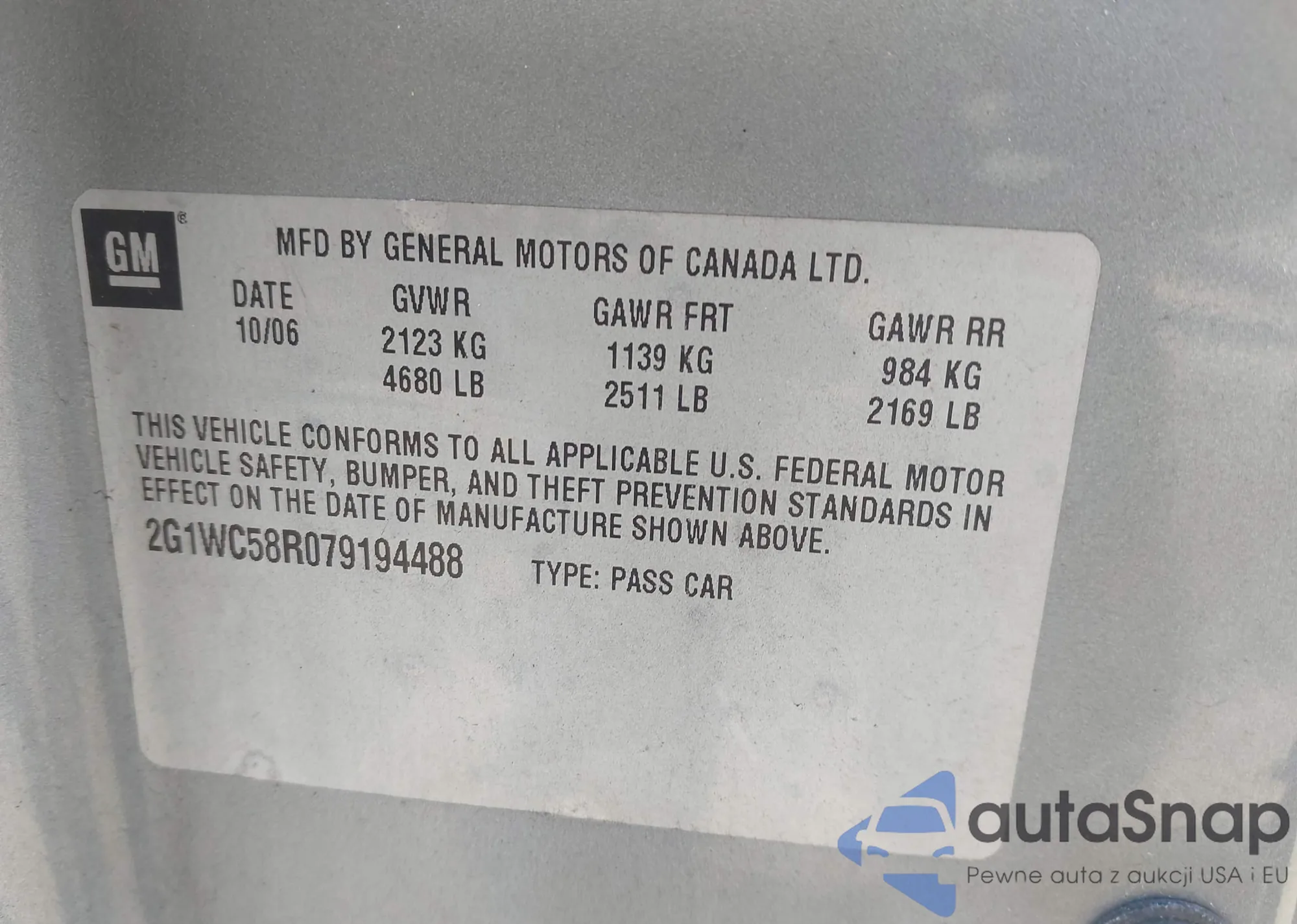 • VIN 2G1WC58R079194488