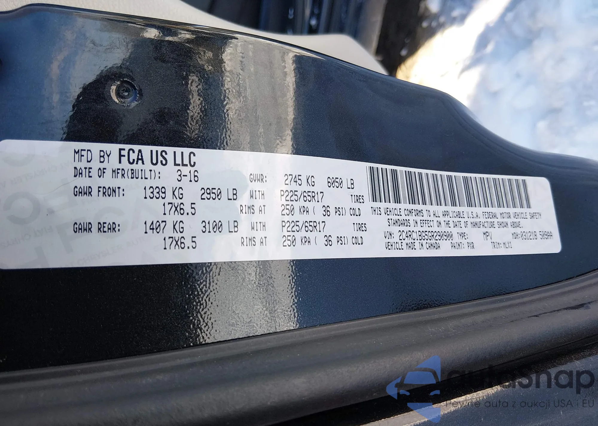 LOT: 43923866 VIN: 2C4RC1BG5GR290900