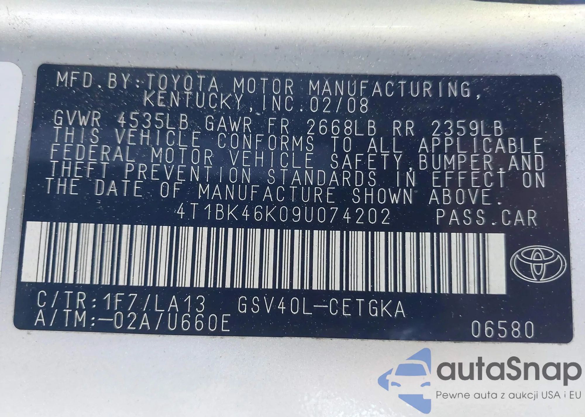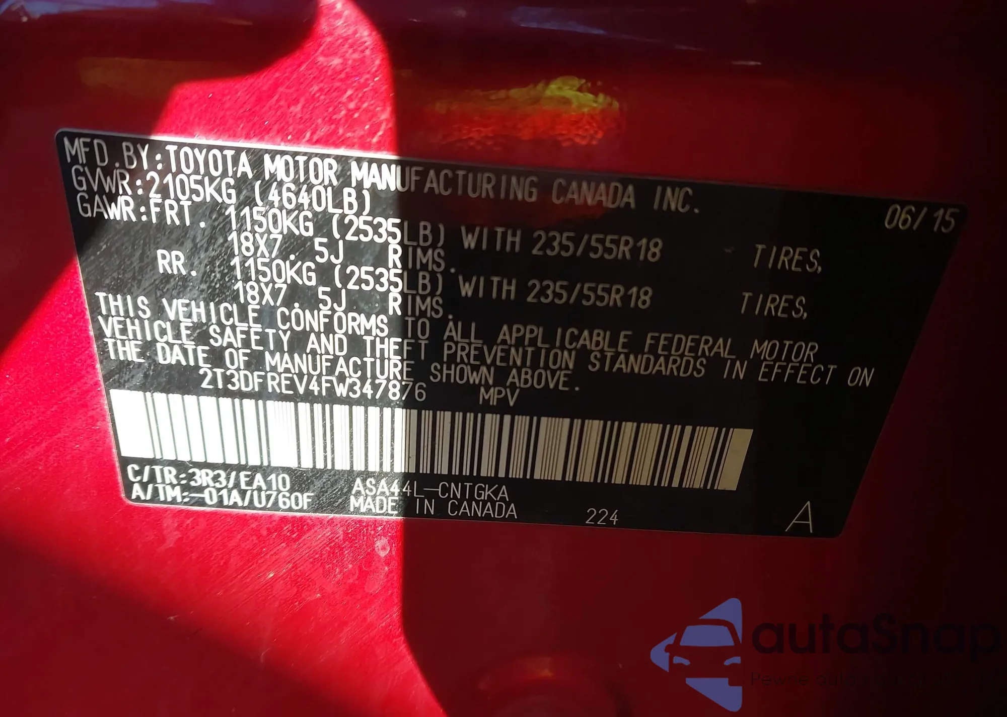 • VIN 2T3DFREV4FW347876