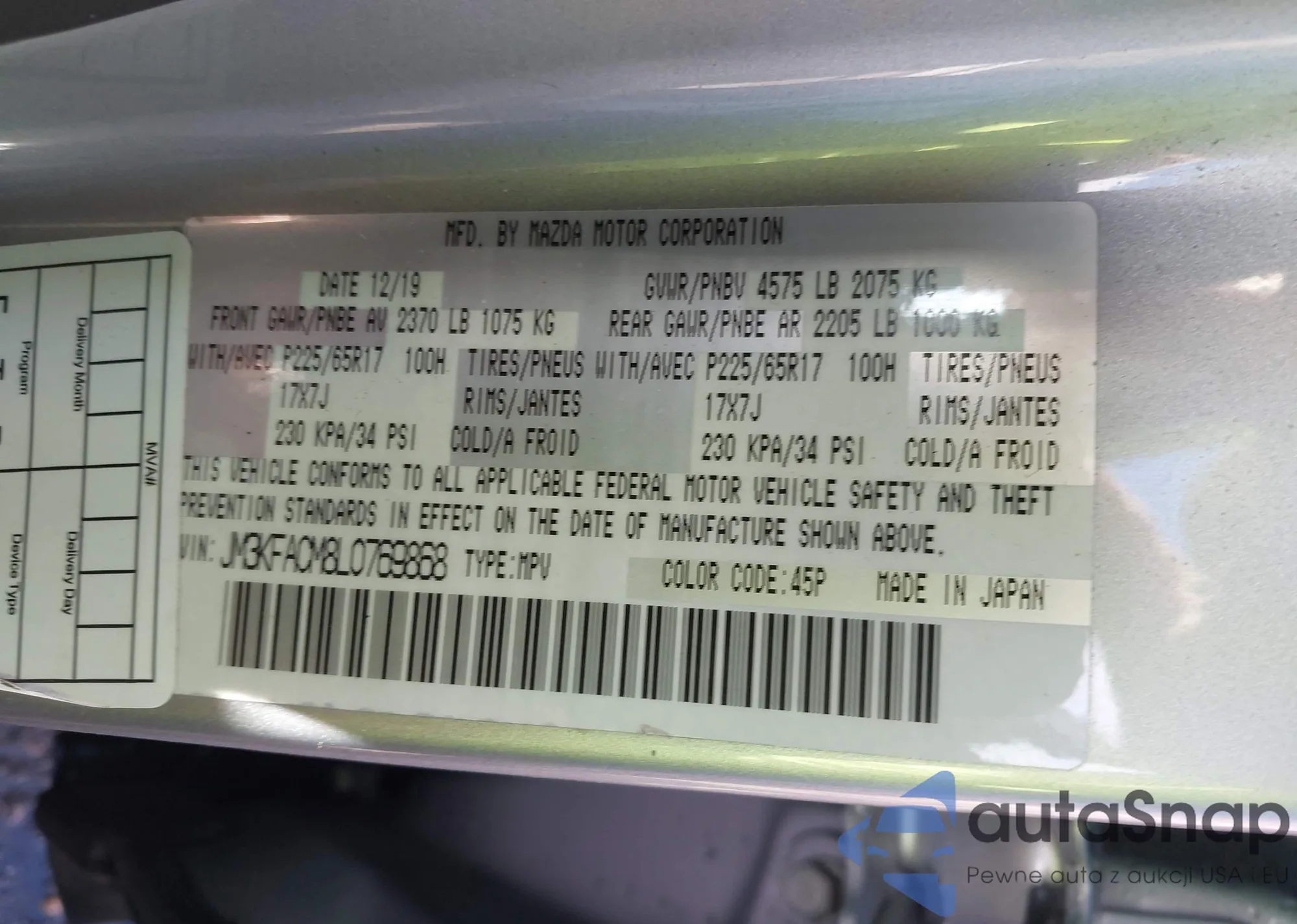 LOT: 44177128 VIN: JM3KFACM8L0769868